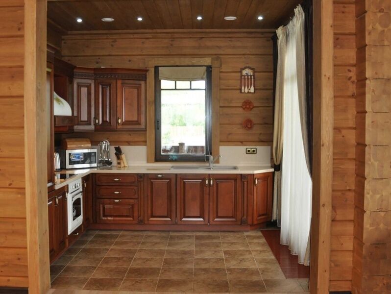 На втором и третьем этажах дома рыбака оборудована общая кухня. В просторном помещении установлены плиты, микроволновые печи, чайные и столовые принадлежности.