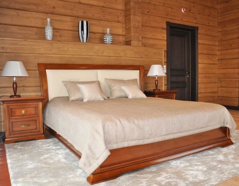 Номер «люкс» отличается простором гостевых помещений и изысканностью убранства. В номере просторная спальня, гардеробная и туалетная комната.