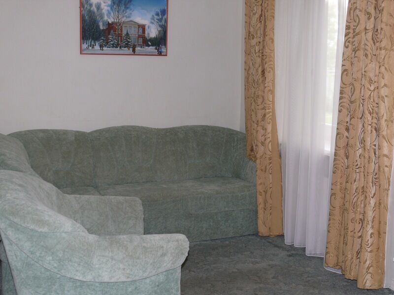Номер состоит из двух комнат. В номере: телевизор, сплит-система, холодильник, двуспальная кровать, санузел. Дополнительное место: раскладной диван.