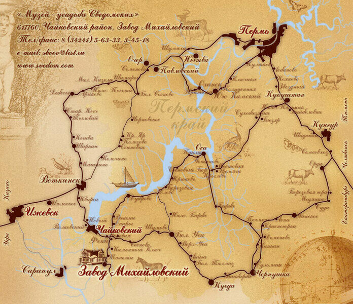Имение Сведомских находится в селе Завод Михайловский на территории Чайковского района Пермского края.