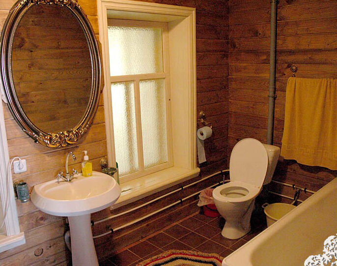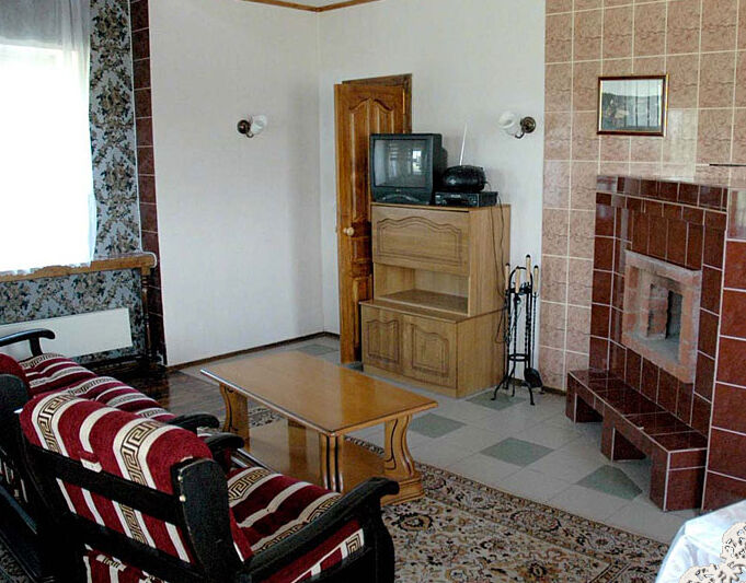 В здании располагаются: холл, гостиная, 2 номера на 4 человека, кухня, туалетная комната с ванной, летняя терраса с видом на пруд.