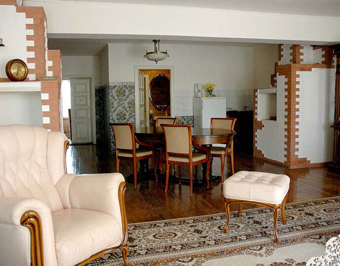 В здании на первом этаже находятся: гостиная с камином, бар, санузел.