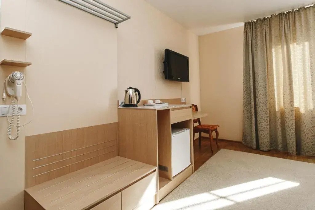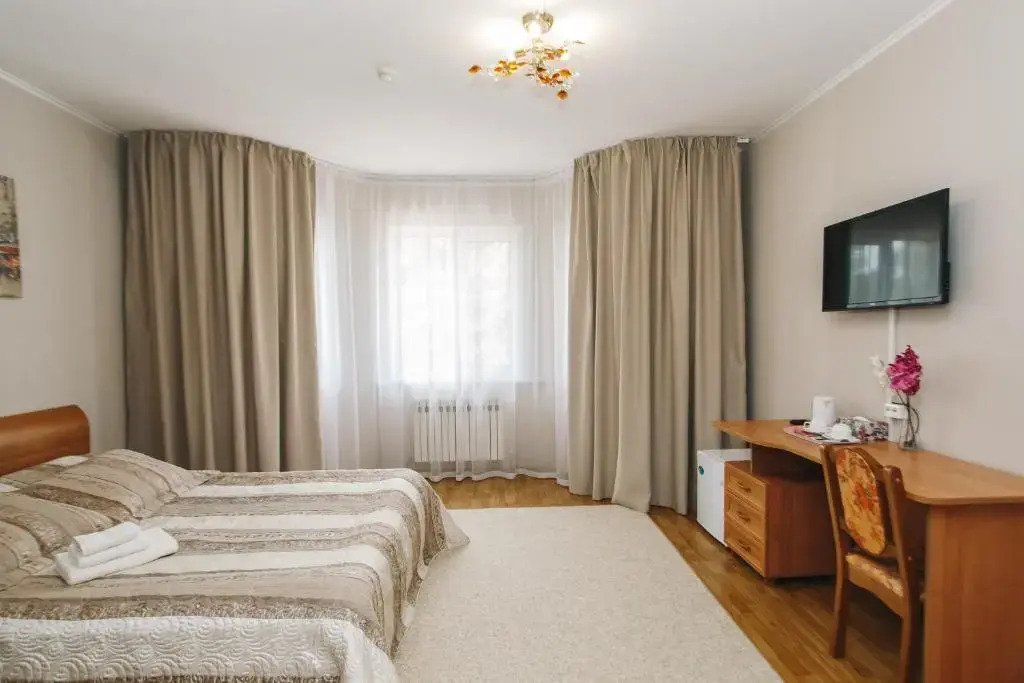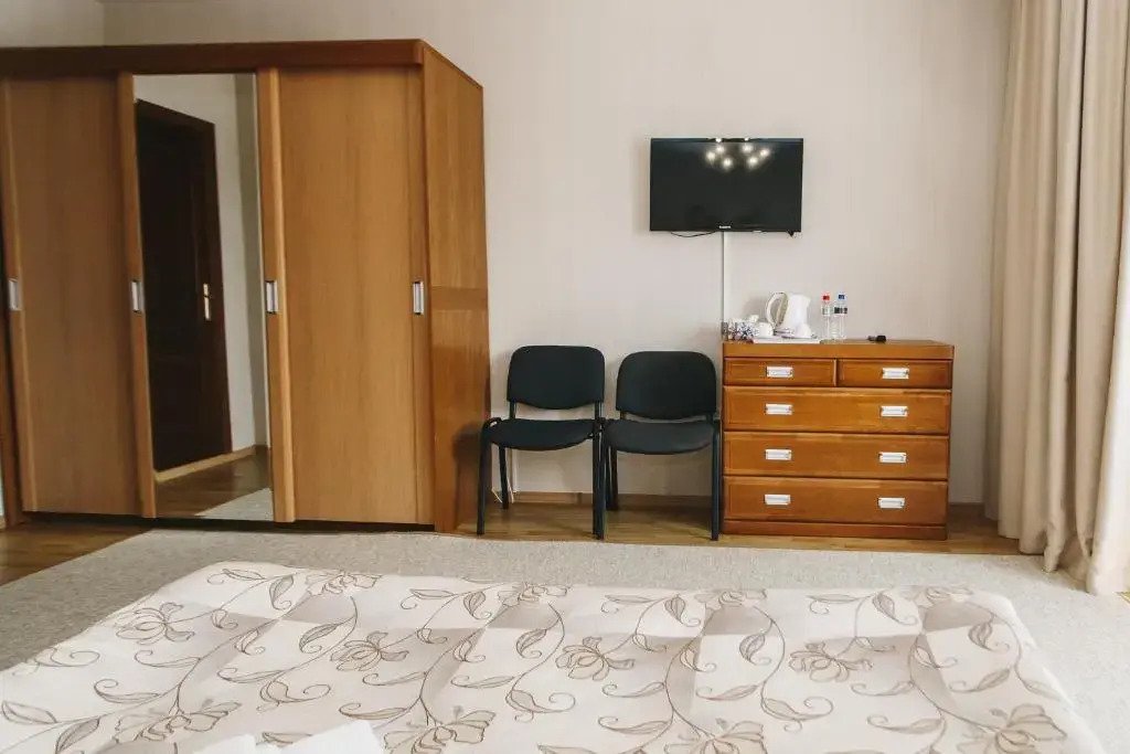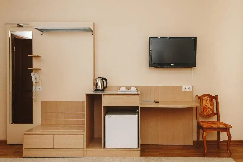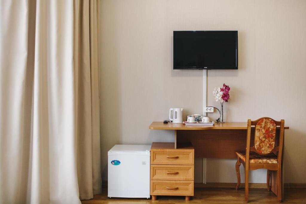 Чтобы вы могли отдохнуть после долгого дня, в номере есть телевизор. Перечисленные услуги есть не во всех номерах. Размер кровати — 140 см на 200 см.