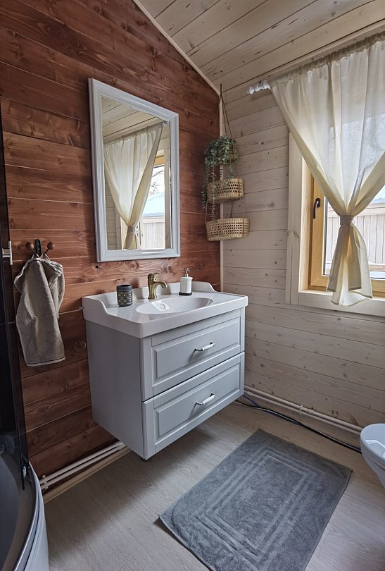 Инфраструктура: зона отдыха, шапочки, душБаня с панорамным окном в комнате отдыха, где можно посидеть за столом. В бане есть душ. Вы можете приобрести ароматные веники, аромамасла и дополнительные дрова на месте.