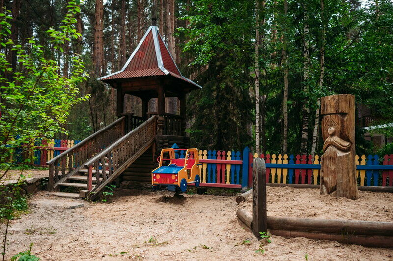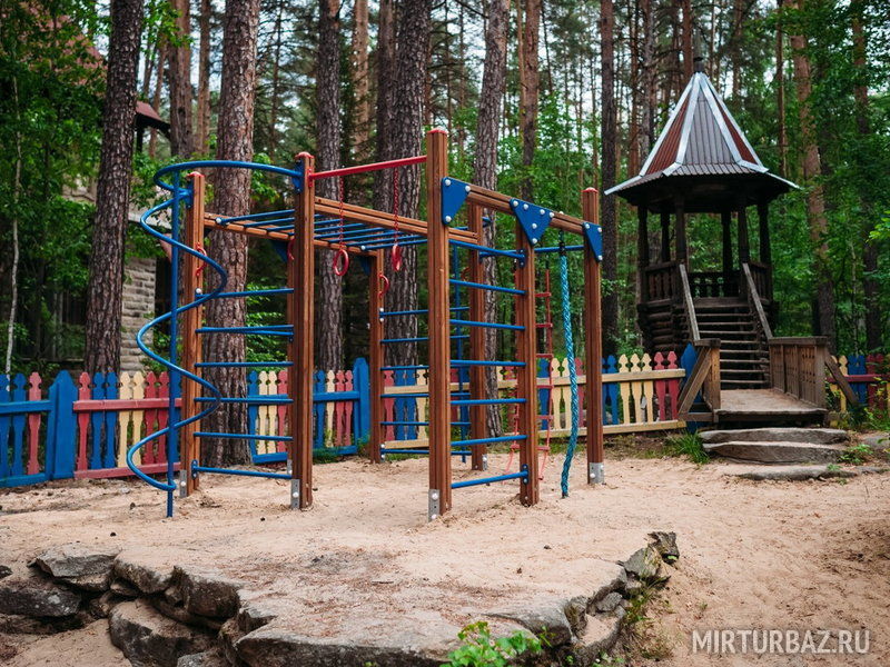 Первое, чему должна отвечать детская площадка — это надёжность, а так же нахождение её в поле видимости взрослых. Площадка расположенная на базе отдыха "Русь" отвечает всем необходимым требованиям и стандартам, кроме того, будет очень интересной и познавательной для детей! Материал, из которого построен городок является экологически чистым.