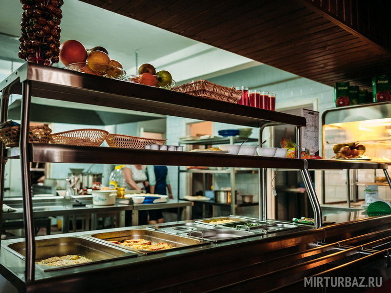 Читать полностьюБаза отдыха «Русь» предлагает 3-х разовое питание в обеденном зале с панорамными окнами. Вкусное питание с утра и до вечера! Зал рассчитан на 80 человек. А также в столовой можно приобрести продукты питания по доступным ценам: замаринованное мясо для шашлыка, овощи, напитки, чипсы, шоколад, мороженое и другие продукты.