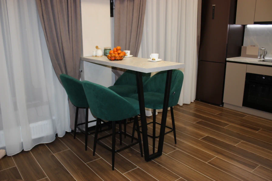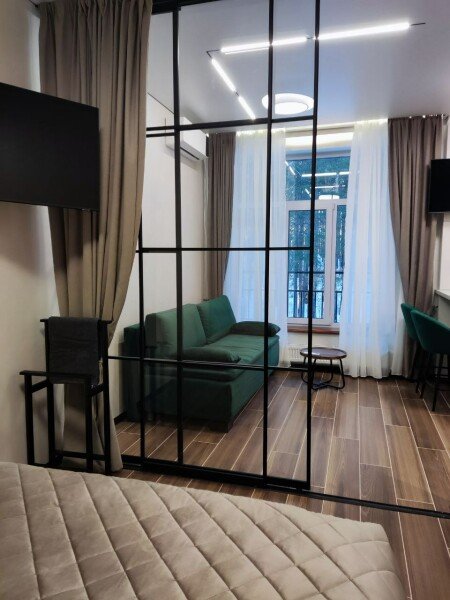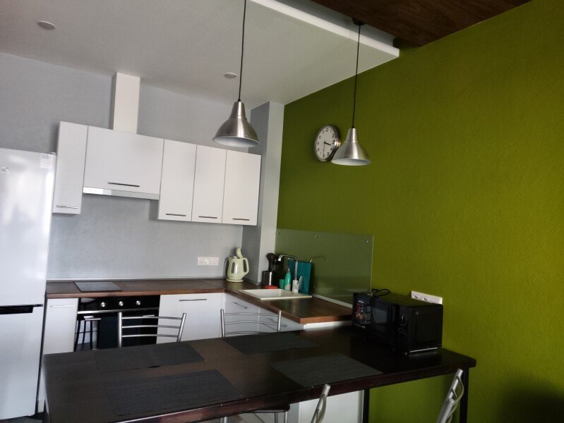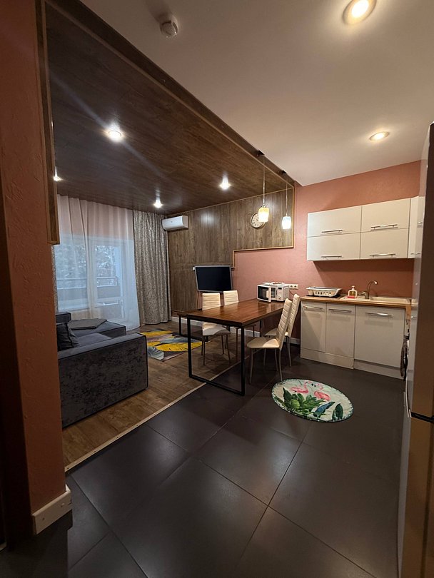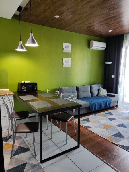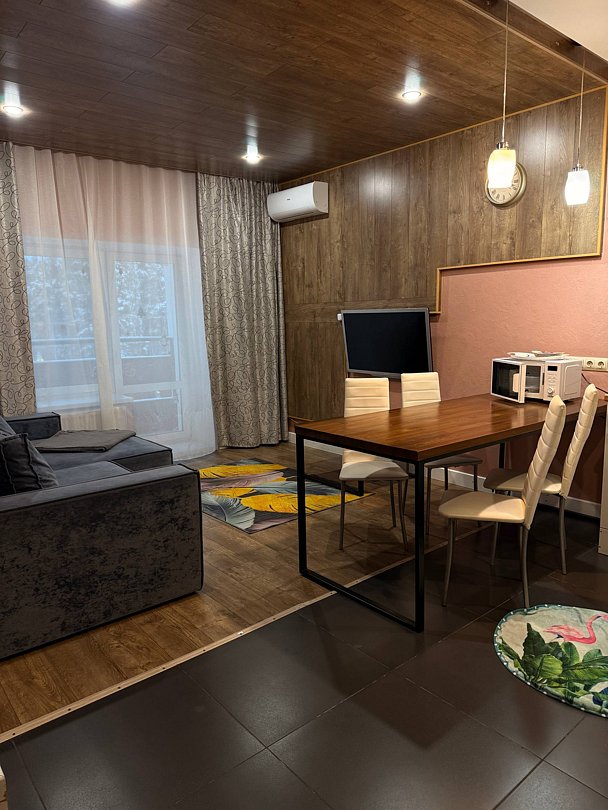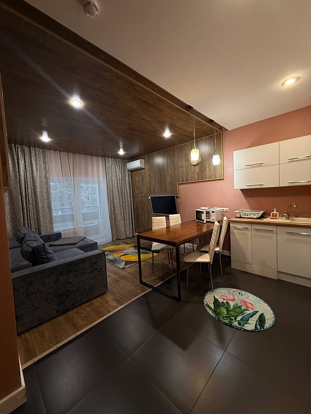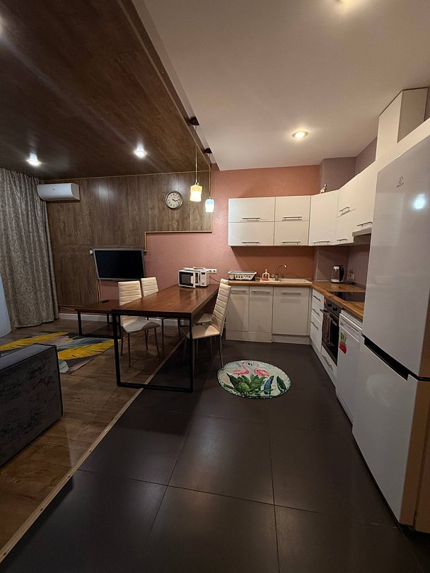 Студия + спальня 2 балкона с видом на паркинг, 2 ТВ, интернет. Приятным бонусом будет теплый пол в прихожей и на кухне, посудомоечная машина, диван. Паркинг и мангальные беседки бесплатно.