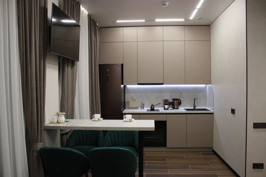 - 3 комнаты с кухонной зоной и всей кухонной техникой;