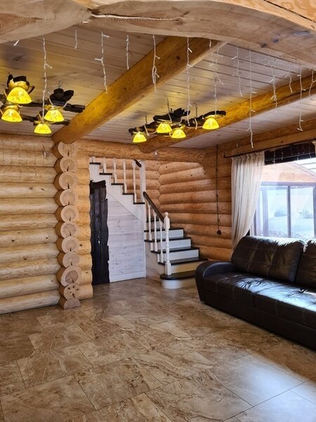 На второй этаж, где расположены три уютные спальни и гостиная комната, ведет широкая двухмаршевая лестница.