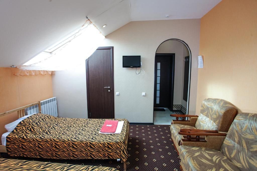 Путешествие с семьейпоездка на родину4-х местный номер, со своей ванной, телевизор. Не хватало в комнате по тумбочке у кровати, вместо кресел вполне можно поставить. Были в жару, даже с отрытыми окнами - душно. Спасались, тем что почти все время ездили по городу. Все как дома, на кухне можно приготовить, поесть есть и холодильник и все необходимое. Персонал приветливый. Место удобное если на машине - закрытый двор. И еще - нужен лифт, отель на 4 этаже и тяжко подниматься. На машине удобно, рядом большой супермаркет и можно найти приличное кафе.