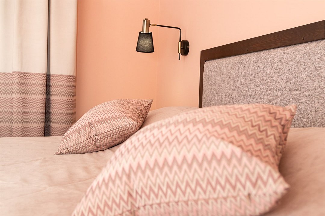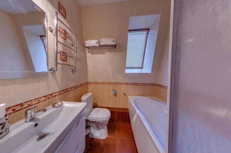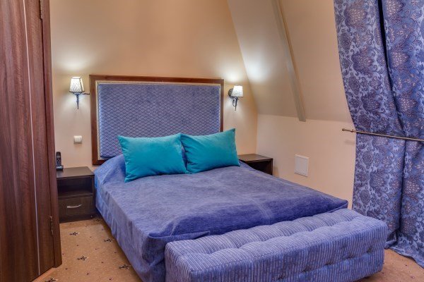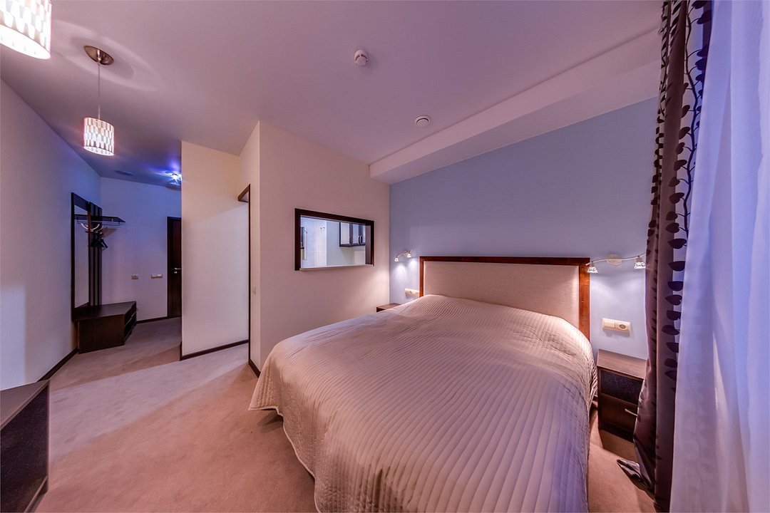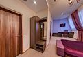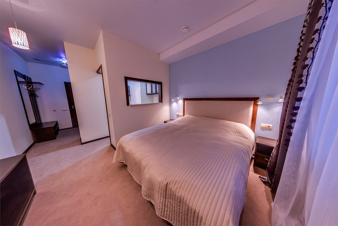телевизор, кабельное телевидение, Wi-Fi, холодильник, кондиционер, фен, санузел, банные полотенца, двуспальная кровать, диван, тумбы, зеркало, пуфики, ковер, две комнаты, унитаз, раковина, без питомцевВ гостиничном номере