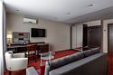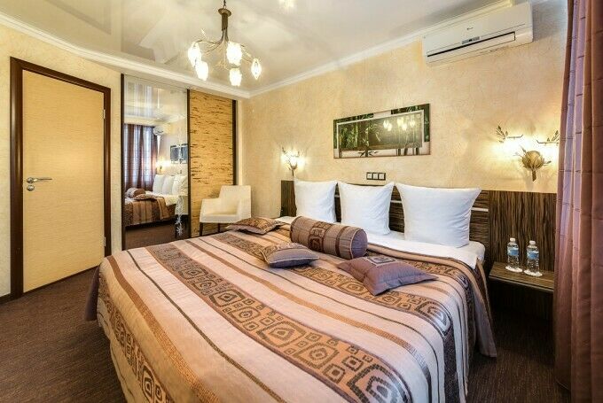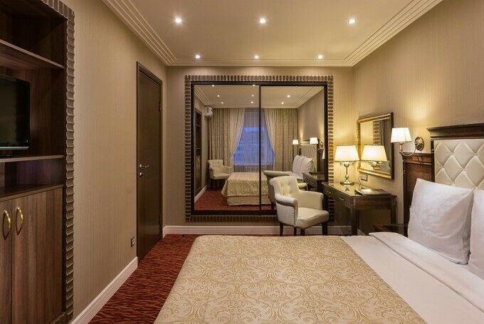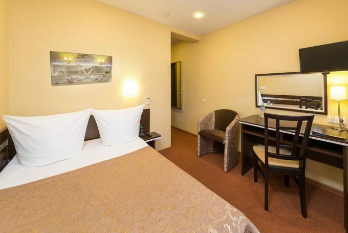 Полулюкс – просторный номер с продуманным интерьером и эффективным использованием пространства, состоящий из одной большой комнаты, поделённой на две функциональные зоны. Одна часть номера— это гостиная, а вторая — спальня. Разумный выбор, если вы ищете комфорт и современность.
