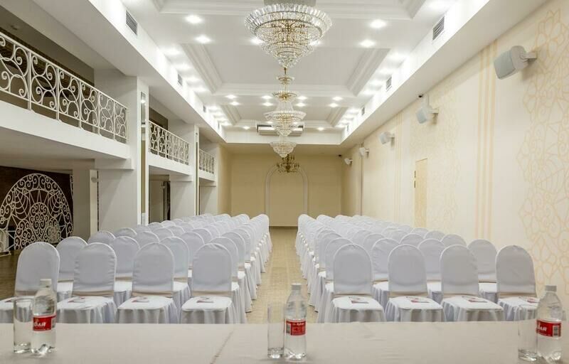 Подходит как для торжественного мероприятия, так и для деловых встреч среднего масштаба.