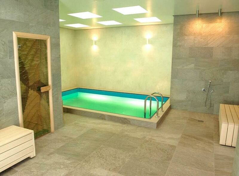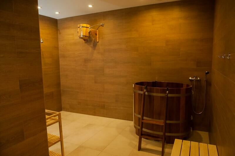 В наличии: противоток, обливная кадушка, телевизор, комната отдыха и кулер с питьевой водой.