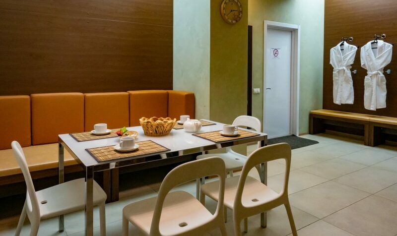 Инфраструктура: зона отдыха, полотенца, простыни, душХамам — уютная сауна с паровой кабиной, в которой поддерживается температура 45-50 градусов, идеальное место для отдыха в небольшой компании.