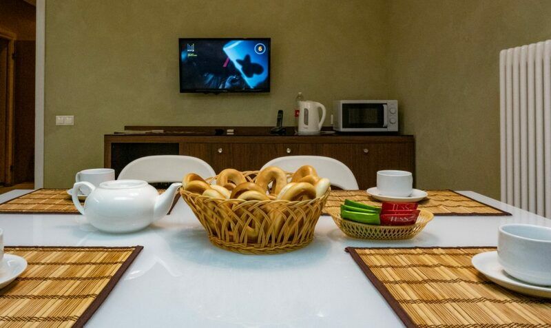 Гостиница расположена на тихой улице центрального района города, между стадионами «Спартак» и «Олимпийский».