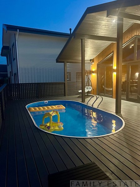 В доме есть все необходимое для комфортного проживания. Три спальни, кухня-гостиная, ванная комната, сауна. терраса. открытый бассейн.