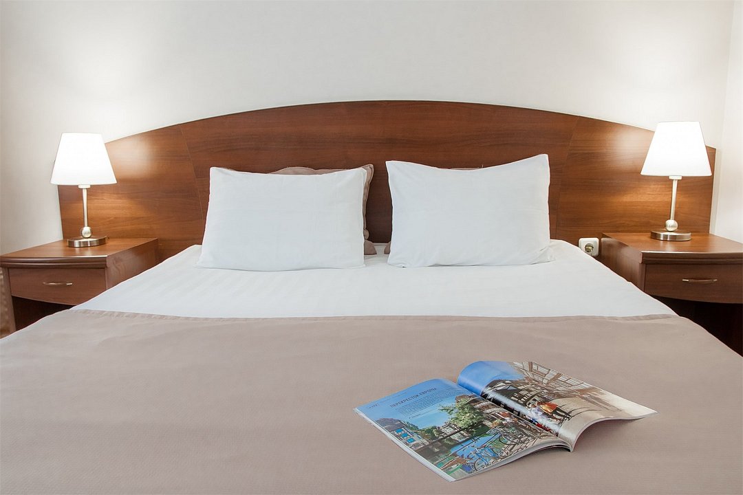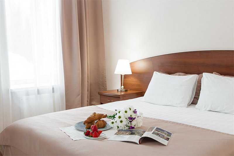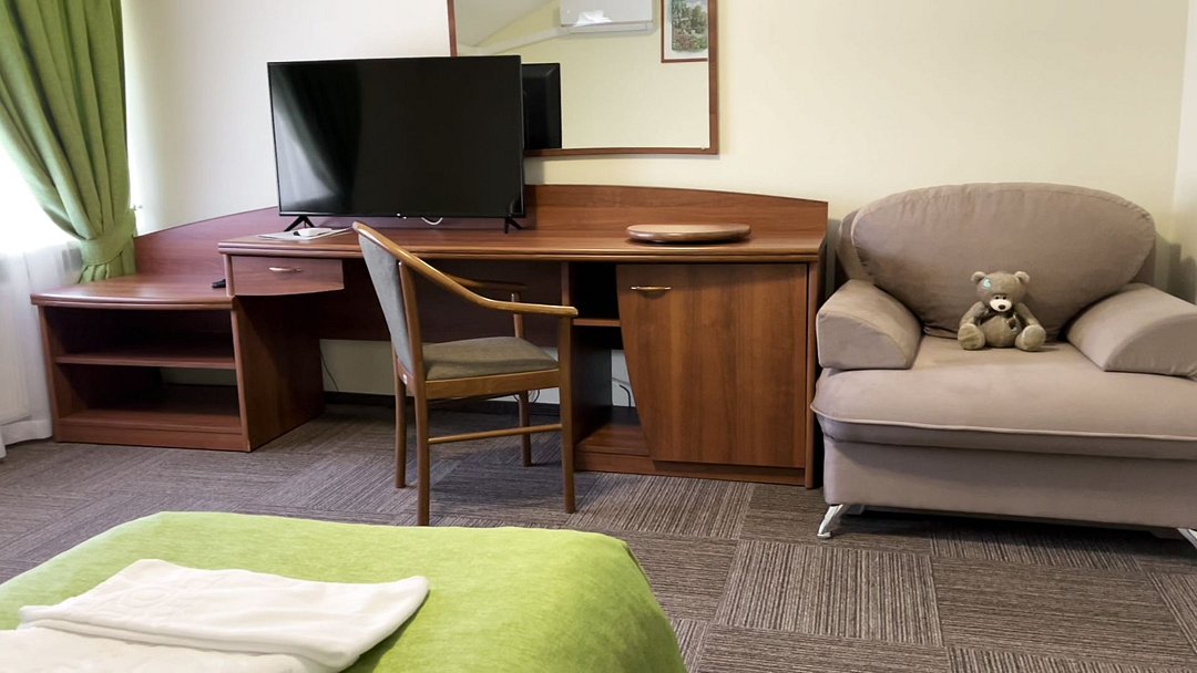 Уютный однокомнатный номер (22-36 кв м) с двуспальной кроватью или с двумя односпальными кроватями. Номер отличается от Стандартного номера наличием стационарного дополнительного места – кресла-кровати. Размещение 1-3 чел.