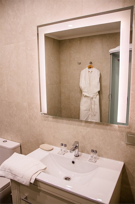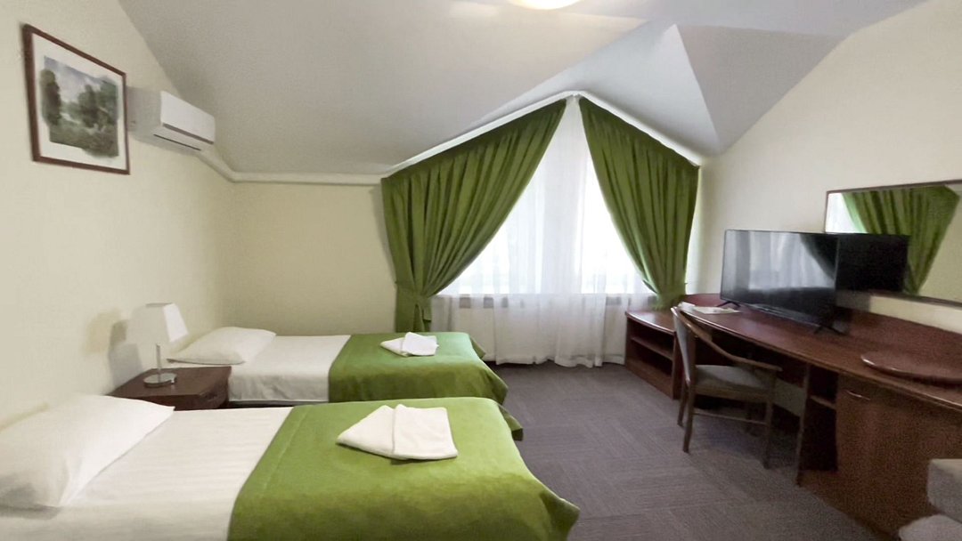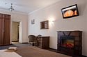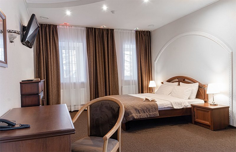 Площадь номера 22—40 м2 В прихожей: шкаф, вешалка, зеркало. В комнате: туалетный столик с зеркалом, полукресло, мини-бар, телевизор, телефон, прикроватные тумбочки, раскладные диван или кресло (доп. спальные места). Есть номера с двуспальной кроватью или двумя односпальными. В ванной комнате: душевая кабина, фен, туалетные принадлежности (шампунь, жидкое мыло), комплект полотенец.