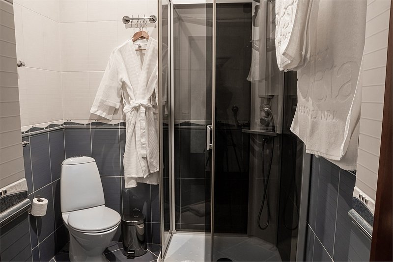 2 ванных комнаты: душевая кабина, фен, туалетные принадлежности (шампунь, жидкое мыло), комплект полотенец.