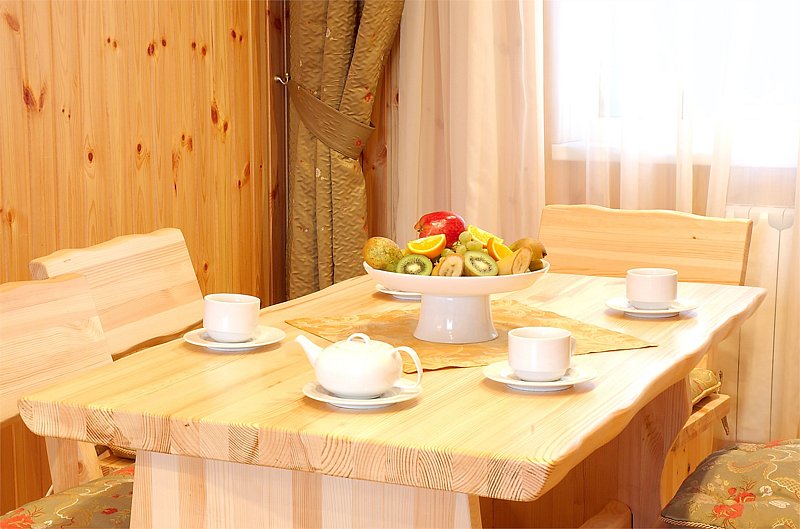 Вилла «Фореста» — отдельно стоящий двухэтажный коттедж на 6-8 человек, интерьер в коттеджном стиле, деревянная отделка и мебель из различных пород дерева.