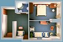 В каждой комнате: телевизор, телефон, прикроватные тумбочки и все необходимое для комфортного размещения и интересного отдыха. Спальные комнаты с двуспальными кроватями.