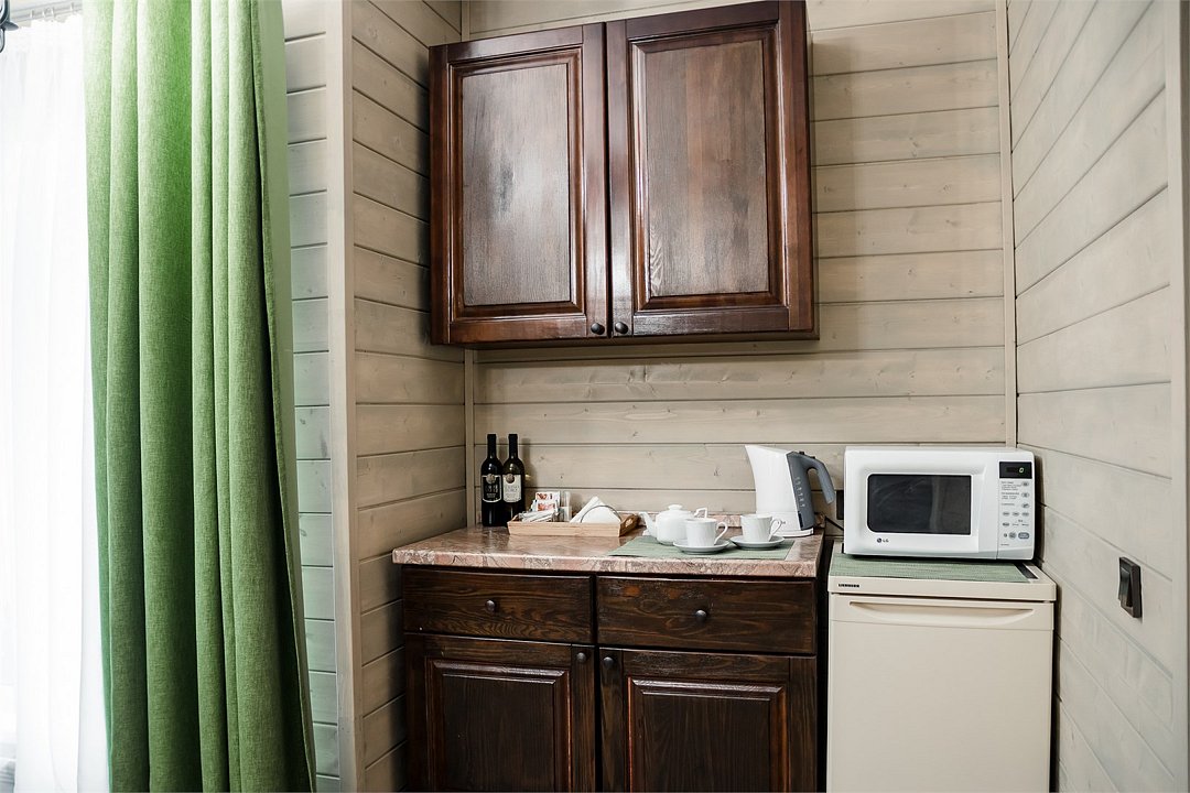 Чайные станции – во всех коттеджах и в Люкс студио. Во всех остальных номерах доставляются по требованию.