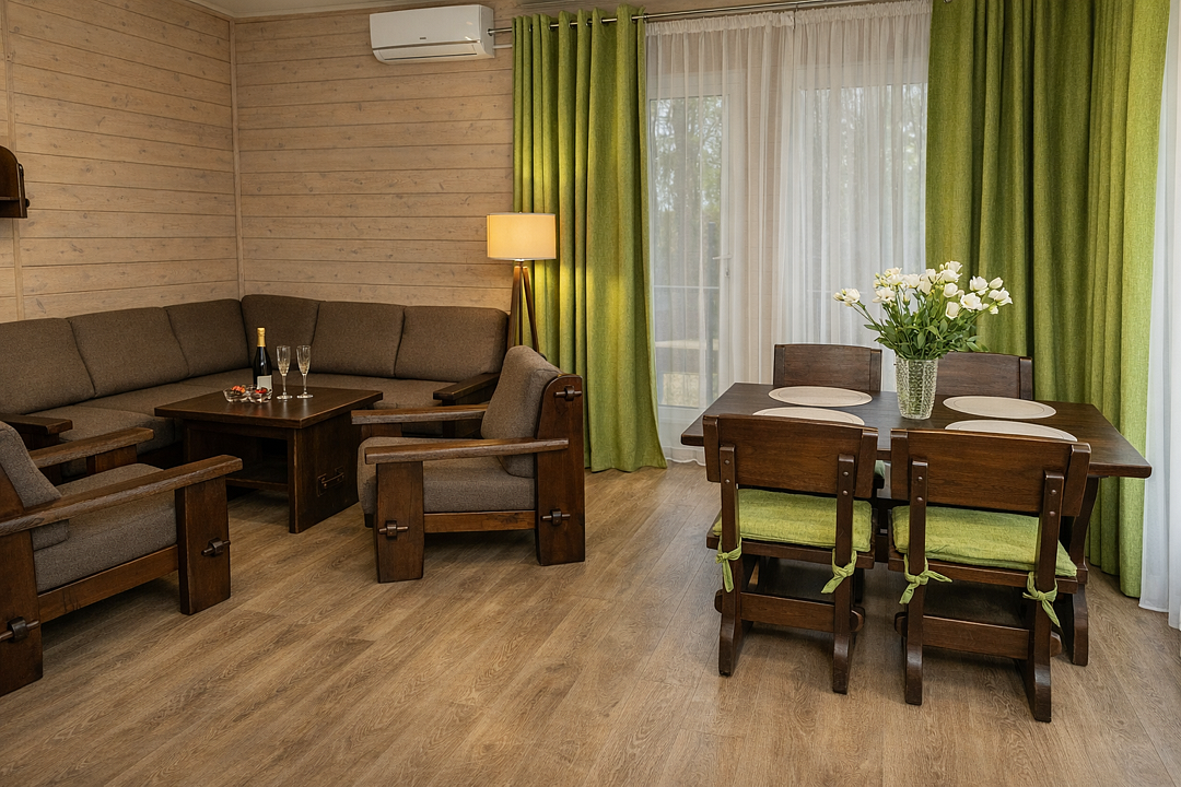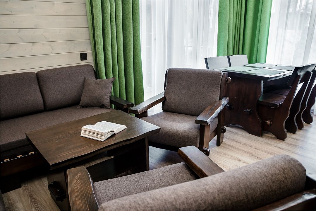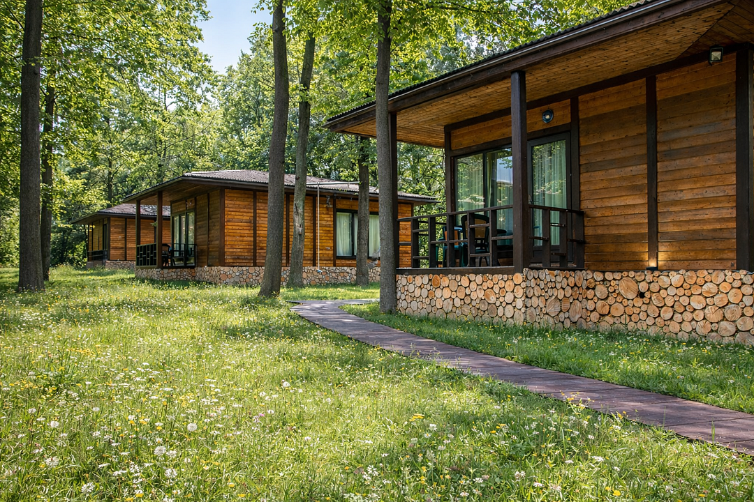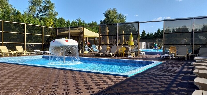 Семейный отдыхДостоинстваОтель находится недалеко от Москвы удобно добираться, есть открытый бассейн и лес вокруг. В принципе, территория располагает к релаксу. В домиках хорошо выдержан температурный режим: ночью не холодно.