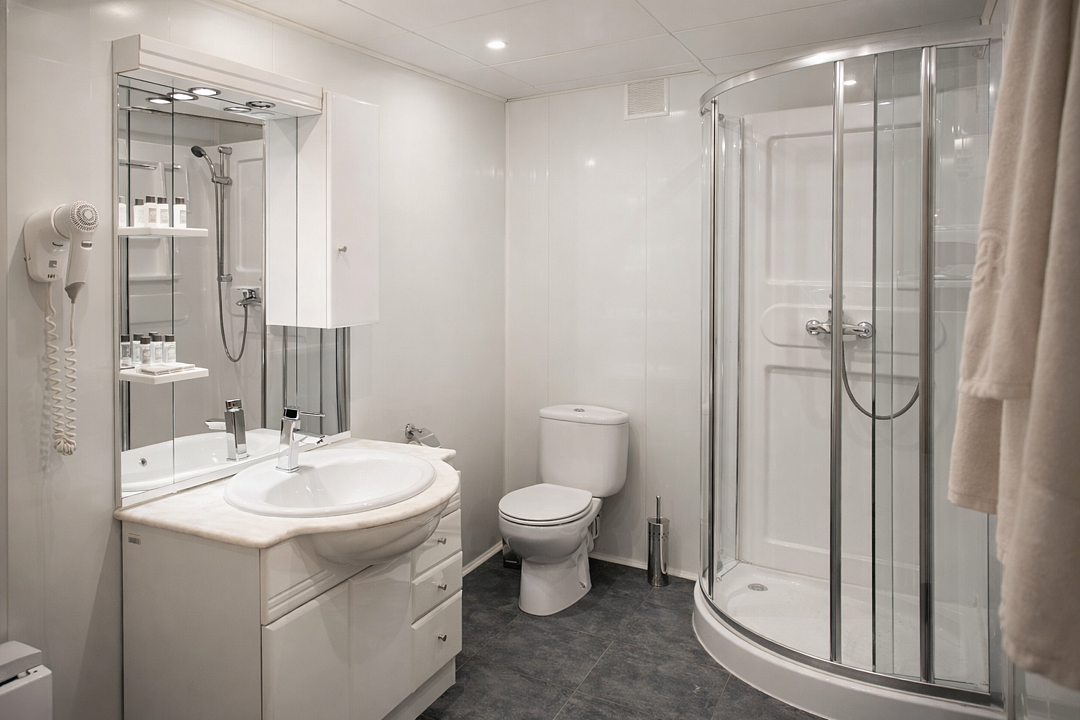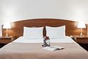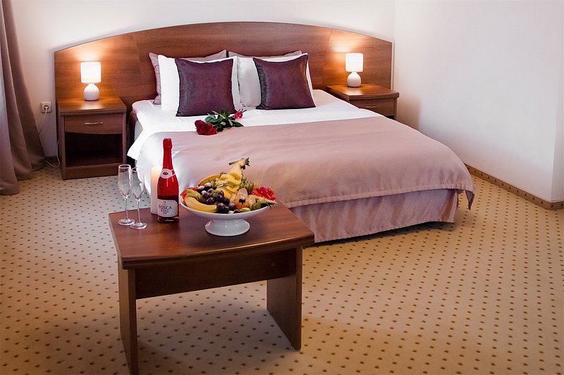 Площадь номера от 18 до 28 м2. В прихожей: шкаф, вешалка, зеркало. В комнате: туалетный столик с зеркалом, мини-бар, телевизор, телефон, прикроватные тумбочки. Номера с одной двуспальной кроватью или двумя односпальными. В ванной комнате: душевая кабина, фен, туалетные принадлежности (шампунь, жидкое мыло), комплект полотенец.