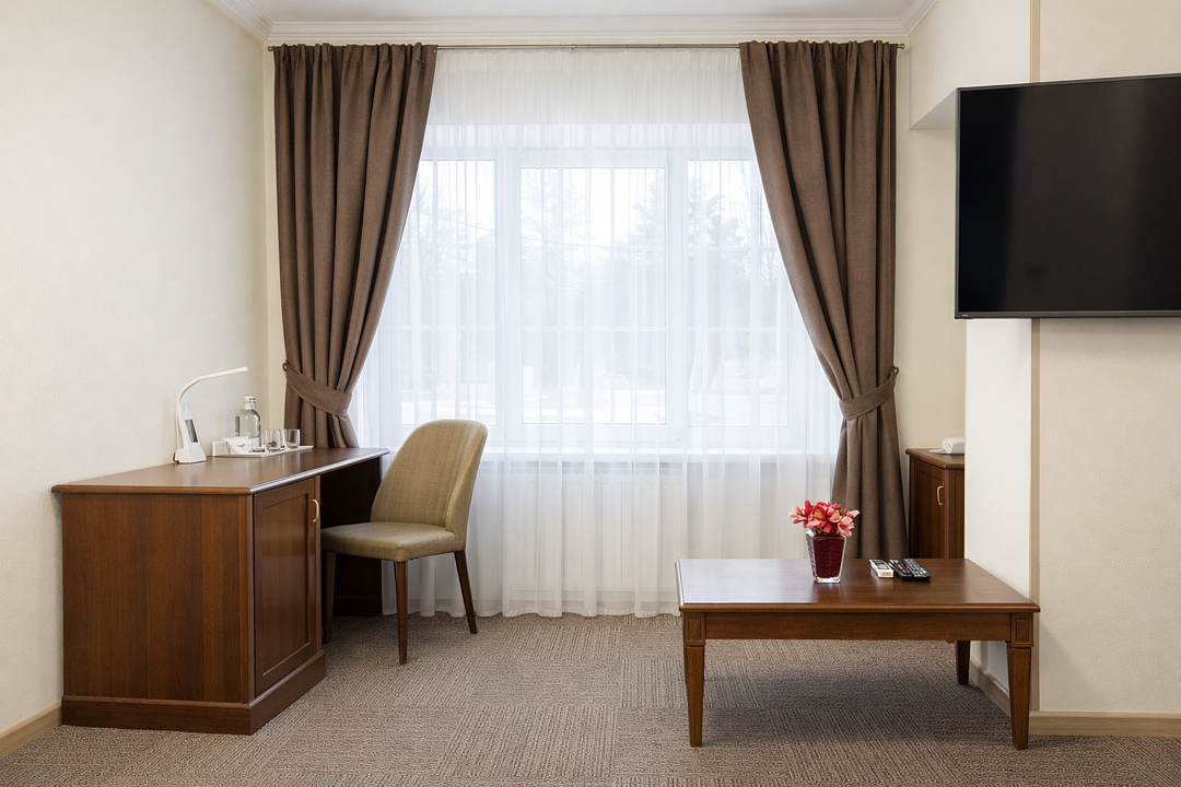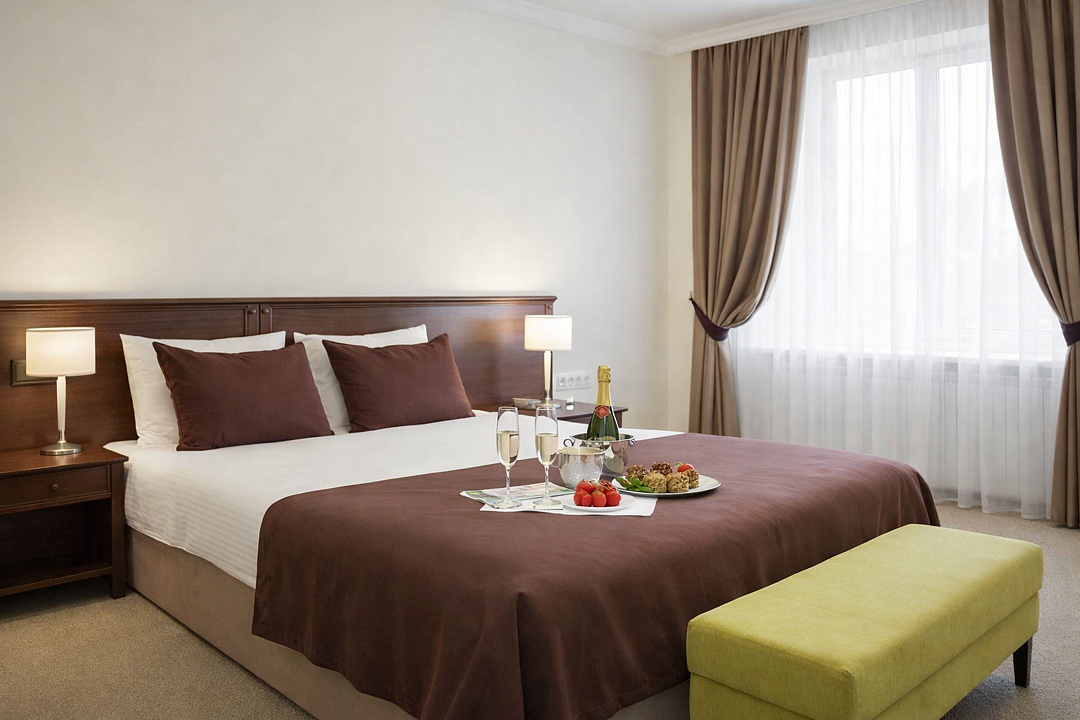 Площадь номера 22—40 м2. В прихожей: шкаф, вешалка, зеркало. В комнате: туалетный столик с зеркалом, полукресло, мини-бар, телевизор, телефон, прикроватные тумбочки, раскладные диван или кресло (доп. спальные места). Есть номера с двуспальной кроватью или двумя односпальными. В ванной комнате: душевая кабина, фен, туалетные принадлежности (шампунь, жидкое мыло), комплект полотенец.