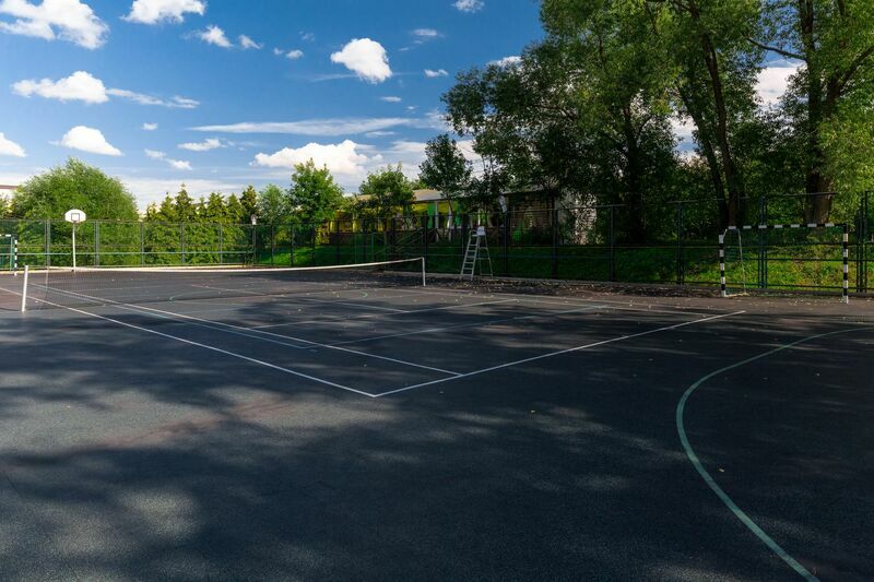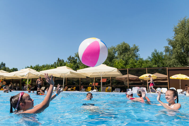 Рядом с бассейном оборудована площадка для пляжного волейбола, а также работают летний бар и кафе, где можно освежиться напитками и легкими закусками.