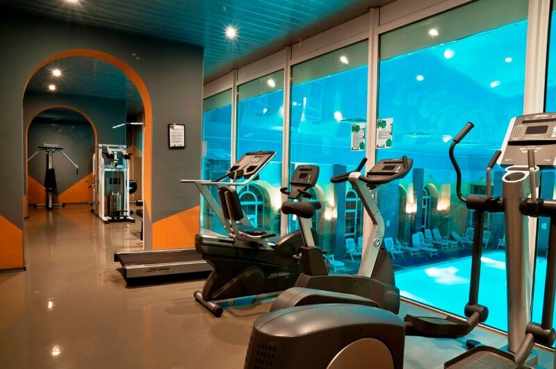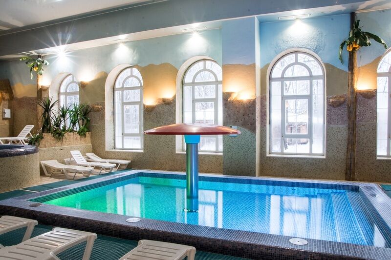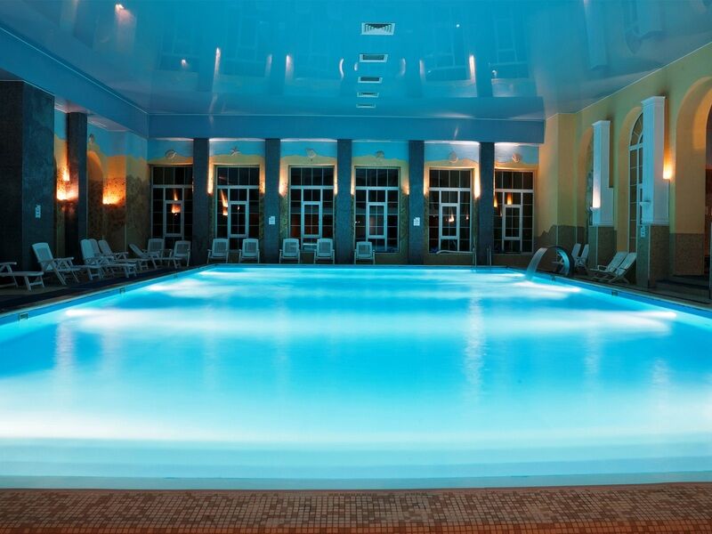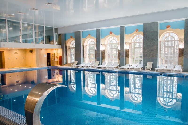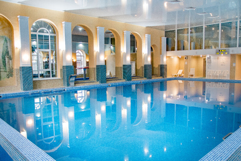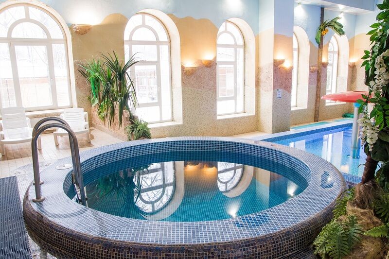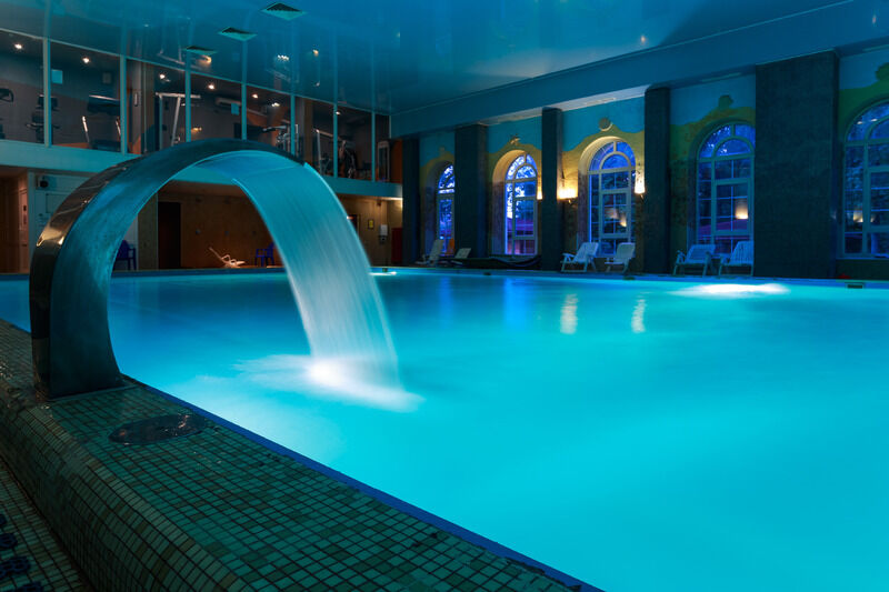 Тип бассейна: крытый бассейнВода в бассейне: подогреваемый бассейнРядом с бассейном: шезлонги, полотенцаТемпература в бассейне: 28 °CВремя работы: от 10:00На территории отеля находится современный аквакомплекс, в центре которого расположен крытый бассейн. Бассейн оборудован встроенной системой гидромассажа — по 3 форсунки с каждой стороны и один центральный гейзер, а также надводным фонтаном, создающим уникальную расслабляющую атмосферу.
