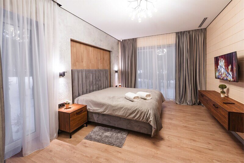 Для размещения доступны стильные номера, шале, виллы и рубленные дома, оснащенные роскошными двуспальными кроватями. В большинстве домов каждая спальня имеет собственный санузел с душевой кабиной. Для маленьких гостей предусмотрены детские кроватки.