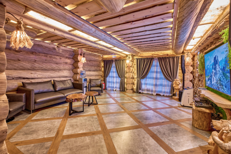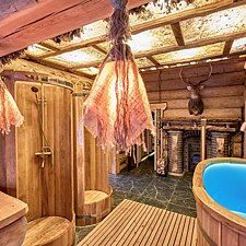 - баня охотника: вместимость 10 человек, парные и аква–зона, стоимость — 15 000 ₽/час, 90 000 ₽/сутки;