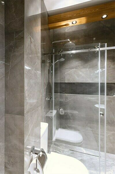 Номер оснащен всем необходимым для комфортного проживания. Современная ванная комната оборудована душевой кабиной, полотенцесушителем, зеркалом с подсветкой, а также косметическим зеркалом и феном. Мягкие халаты и полотенца, тапочки, банные и косметические принадлежности.