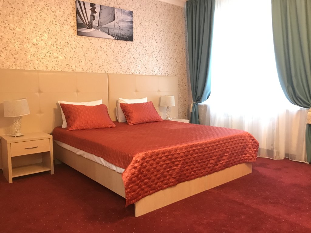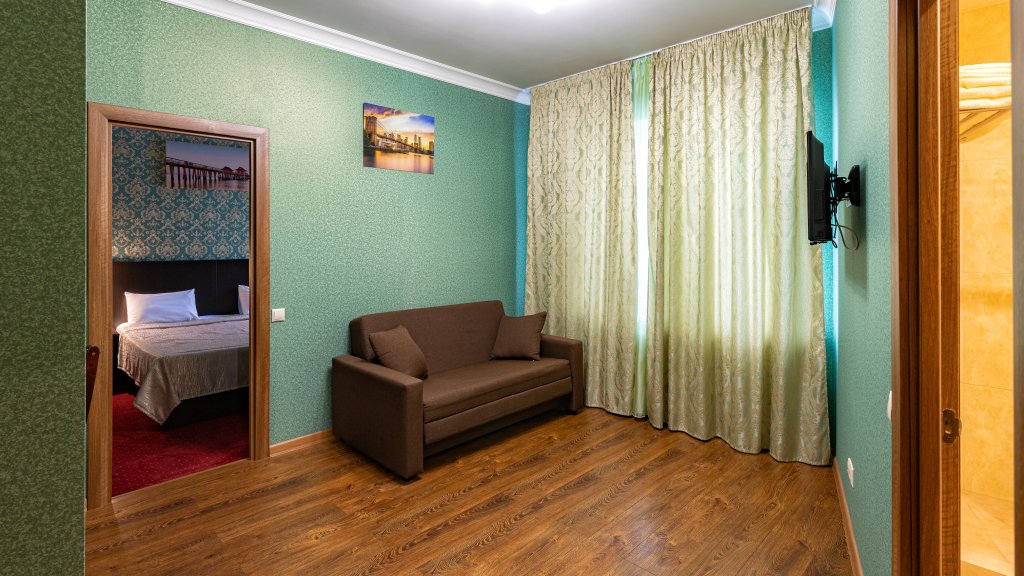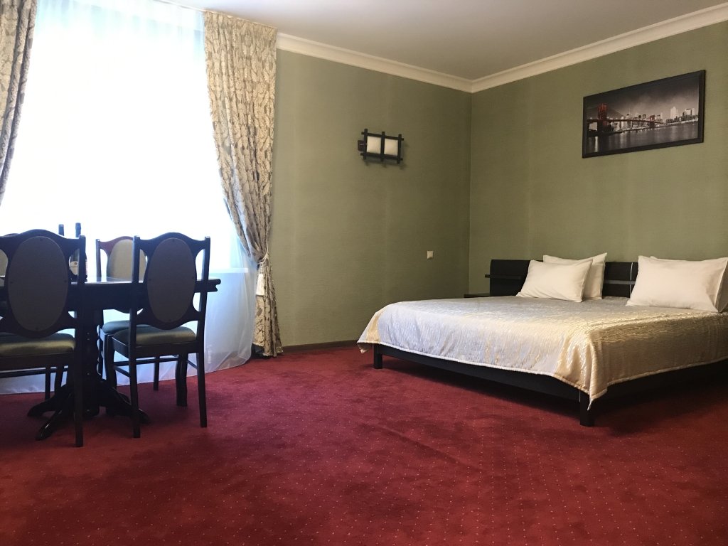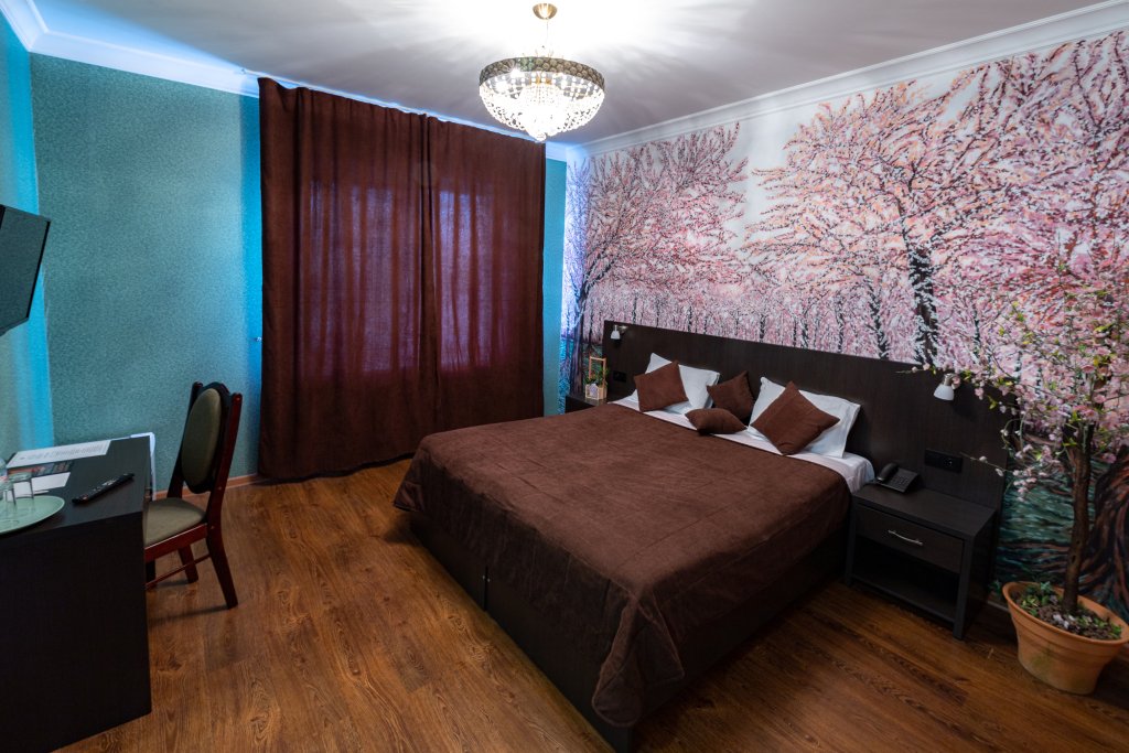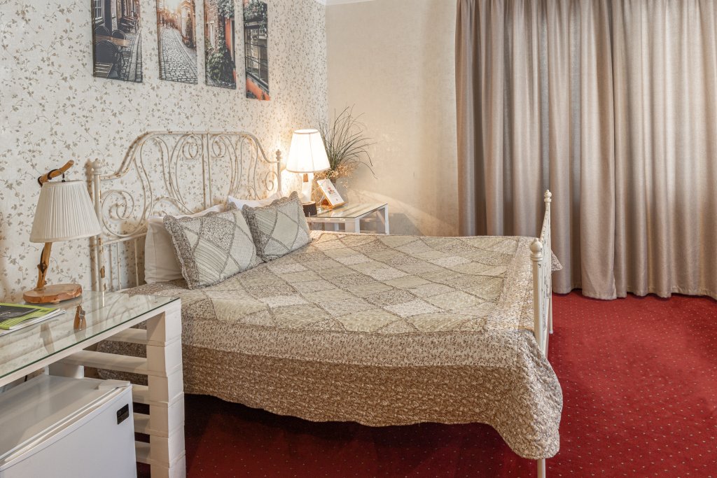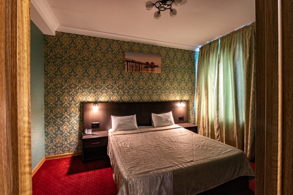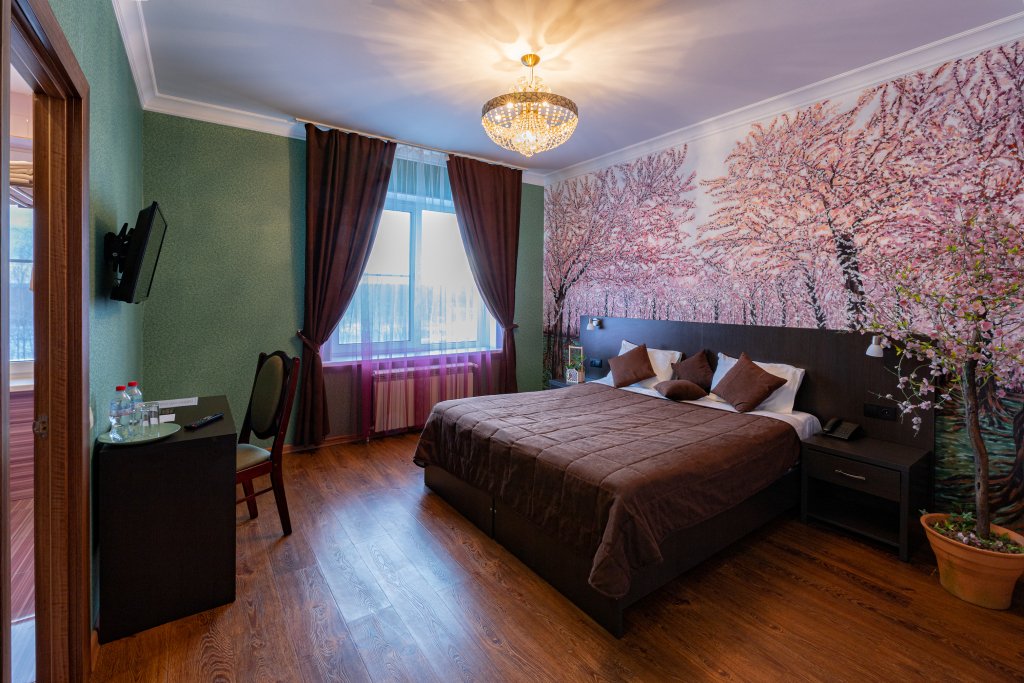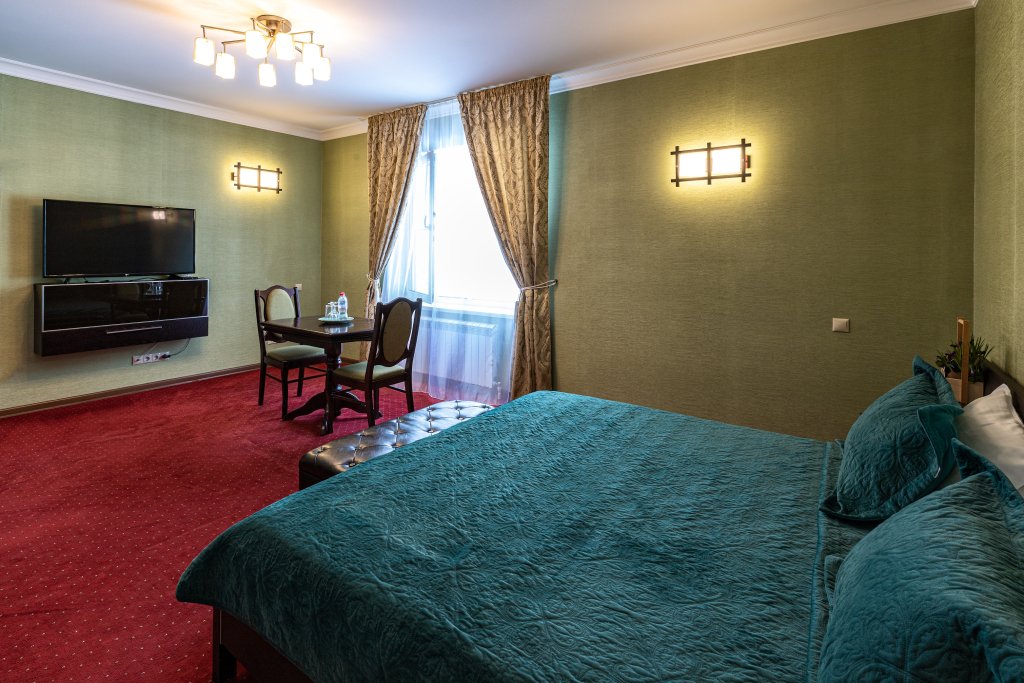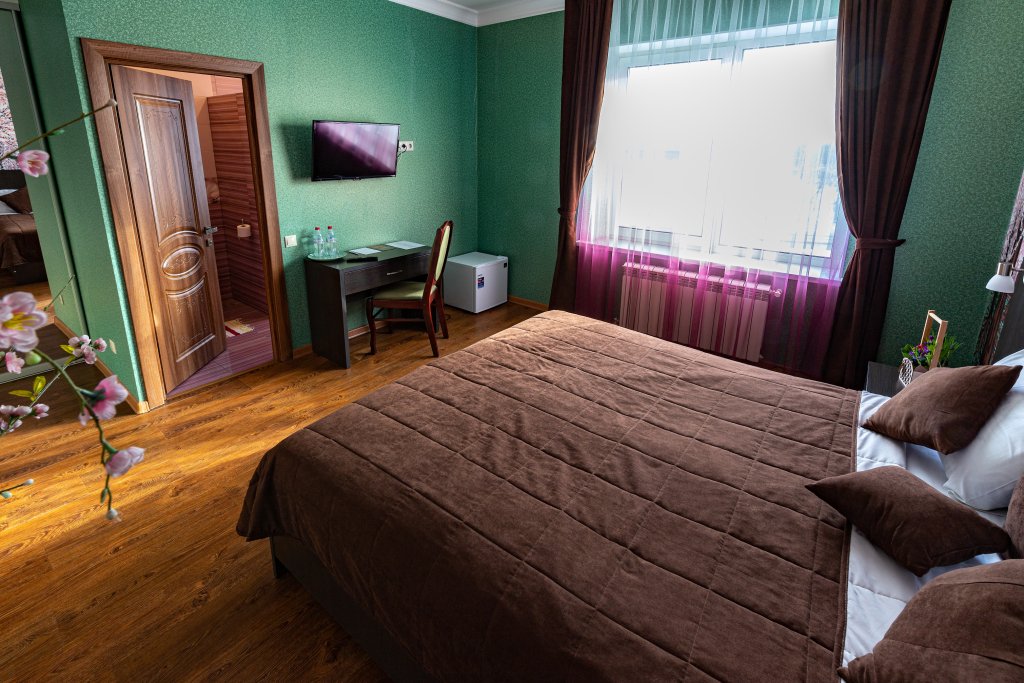 Номер уютно обставлен и оснащён необходимым, чтобы отдохнуть после долгого и насыщенного дня. Имеются телевизор и халат. Оснащение зависит от выбранной категории номера.