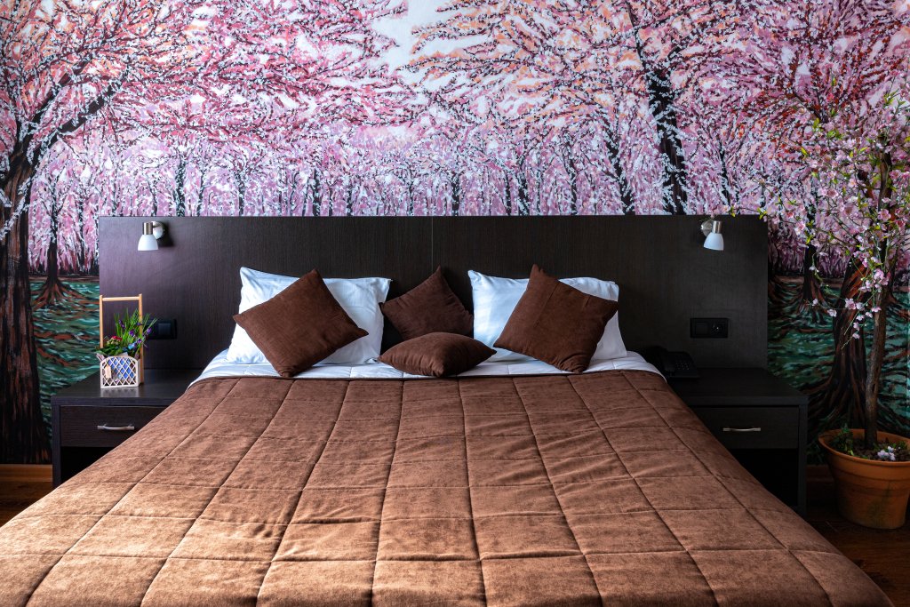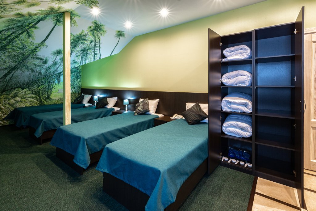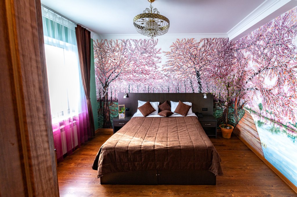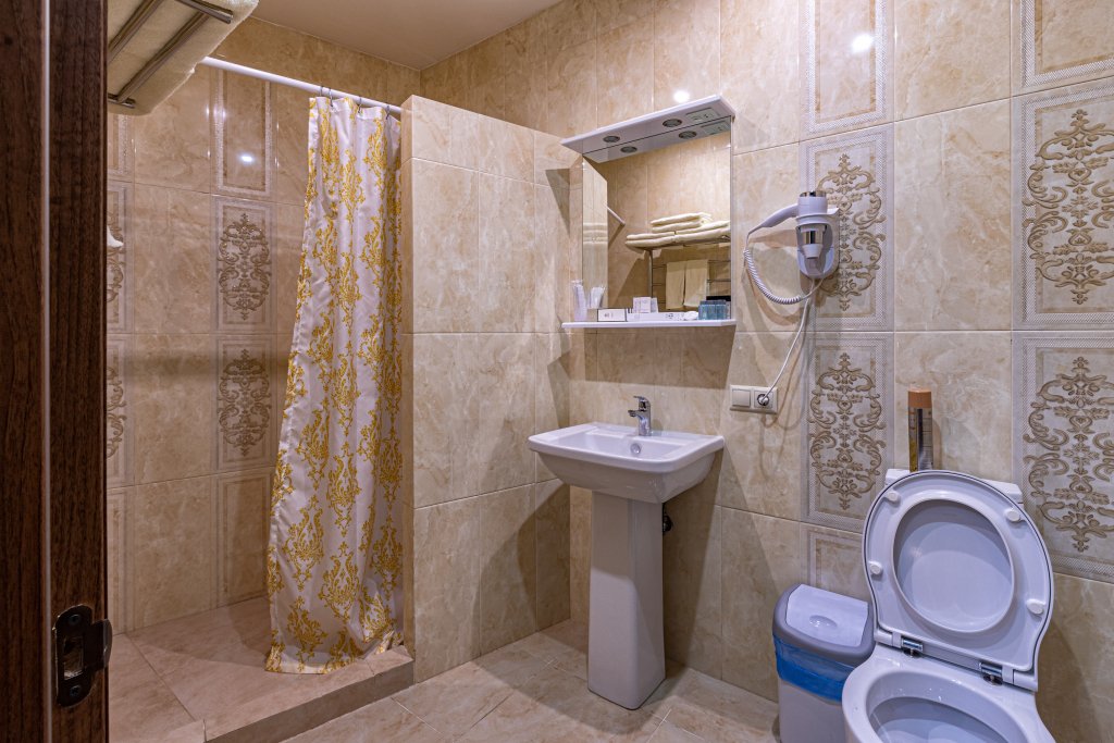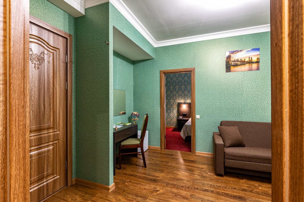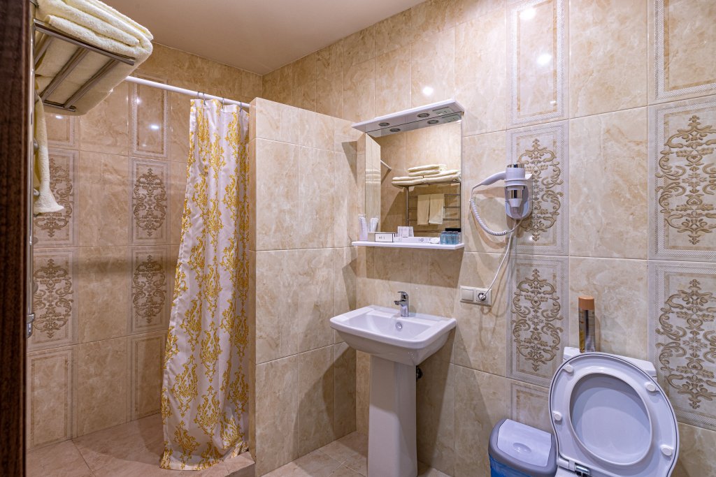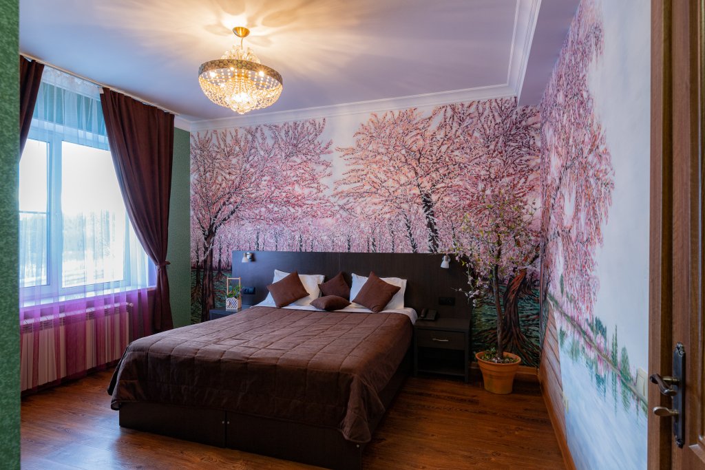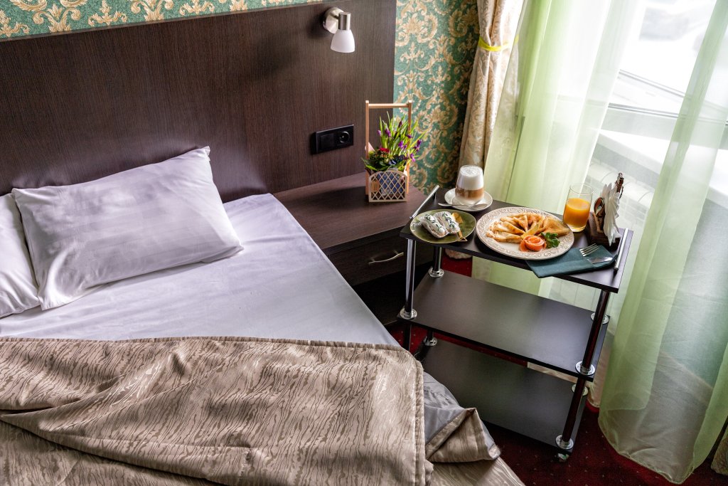 Номер уютно обставлен и оснащён необходимым, чтобы отдохнуть после долгого и насыщенного дня. Имеются телевизор и халат. Оснащение зависит от выбранной категории номера.