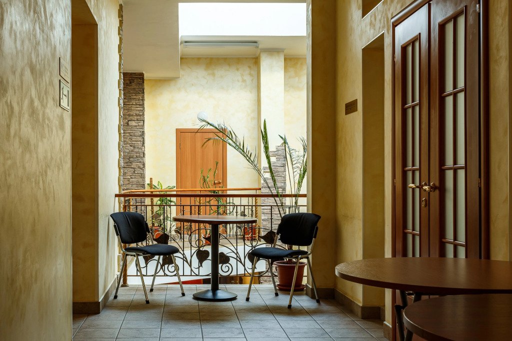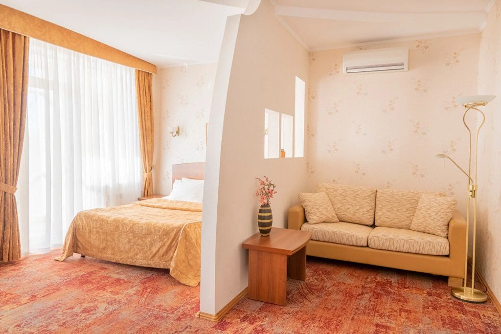 На территории гостиницы расположен спортивно-оздоровительный комплекс с сауной, тренажёрным залом, солярием и массажным кабинетом.