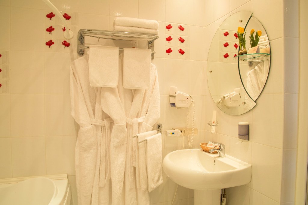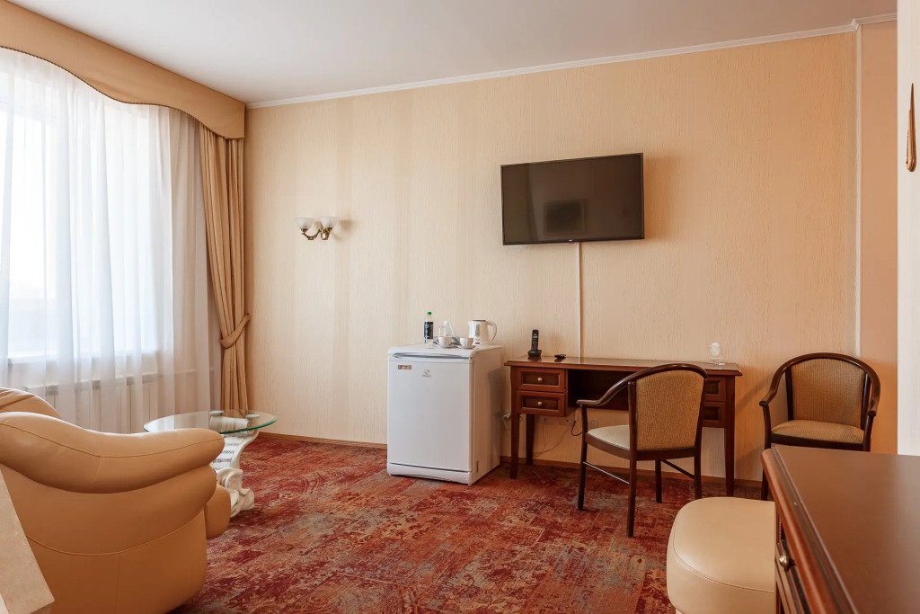 В каждом номере есть Wi-Fi, телевизор, телефон, кондиционер и холодильник.