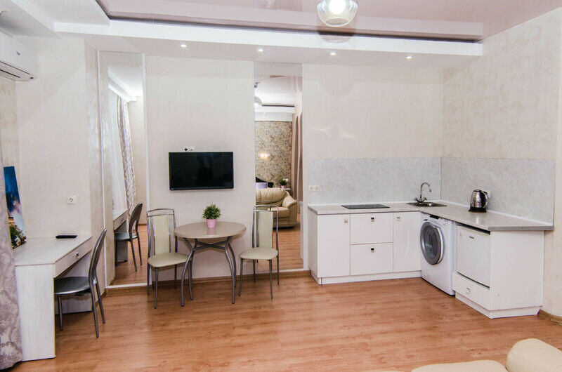 Удачное расположение нового дома на пересечении проспекта Ленина и ул.Российской обеспечивает ему великолепную транспортную доступность. Закрытая территория с видеонаблюдением. Консъерж. Парадные дома отделаны декоративной штукатуркой. В квартирах выполнен дизайнерский евроремонт, адаптированный под потребности делового туриста, который может воспользоваться всем спектром удобств и комфорта, необходимых в командировке.