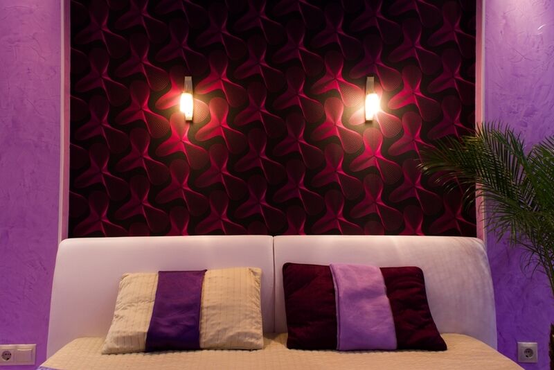 Стильный продуманный интерьер, раскрашенный всевозможными оттенками лилового и фиолетового цветов, удобная двуспальная кровать с изумительной LED-подсветкой, кондиционер, двойная гидромассажная ванная (джакузи), барная стойка, система декоративного освещения квартиры, многоуровневые потолки и свободный WiFi - всё это сделает Ваше пребывание в данных апартаментах максимально комфортным и незабываемым!