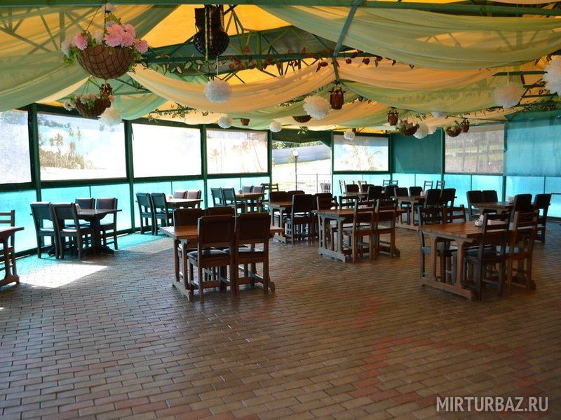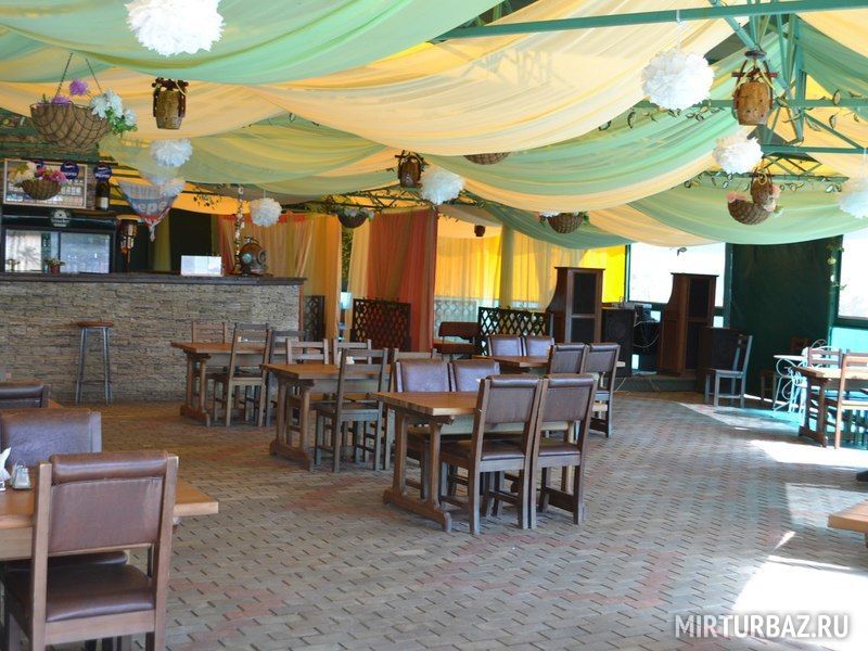 На территории базы работает летнее кафе “Уютный берег”, а для желающих готовить самостоятельно — предлагается прокат инвентаря для приготовления шашлыка. Во всех гостевых домах имеется кухонная техника.
