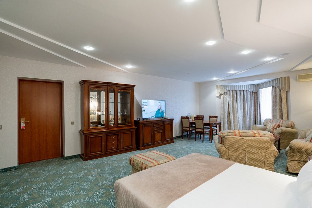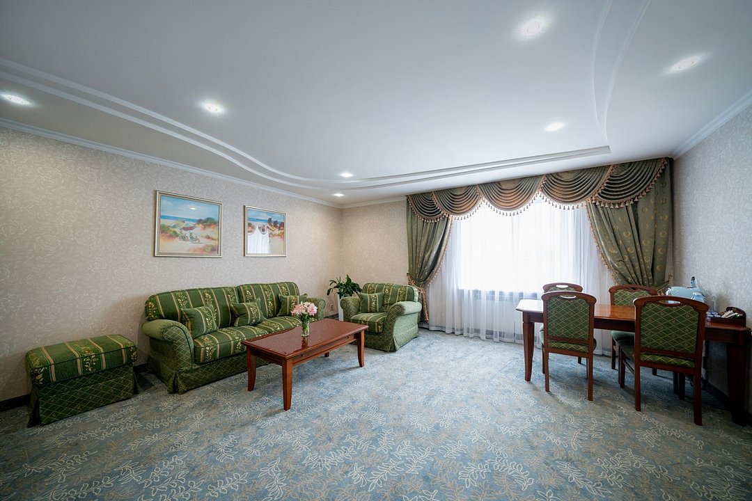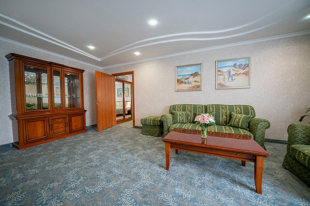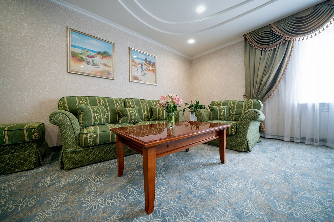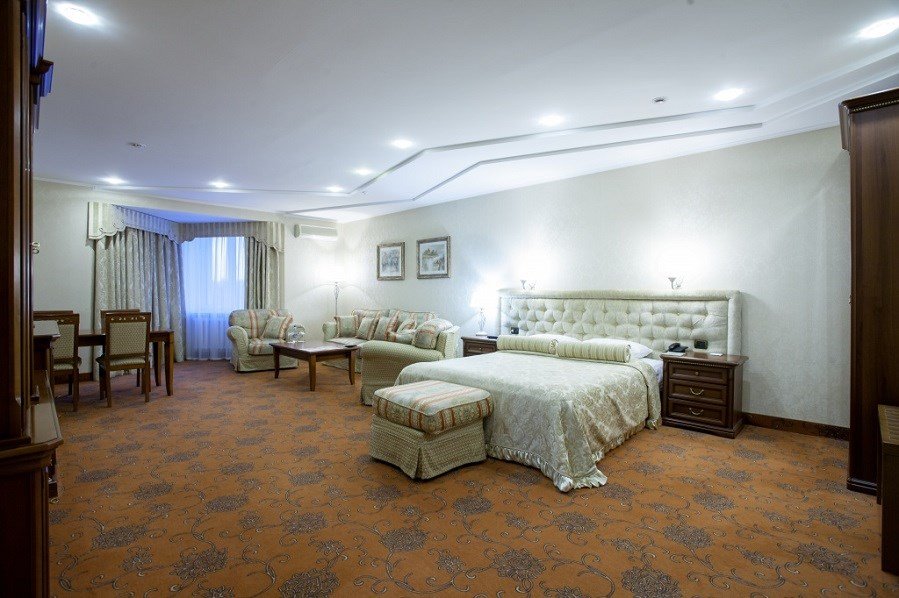 Комфортабельный номер большей площади с кроватью Queen size. 3 номера с мягким уголком (диван, кресла, журнальный столик), 2 номера без мягкого уголка. Площадь номера 40 м²Услуги и удобства