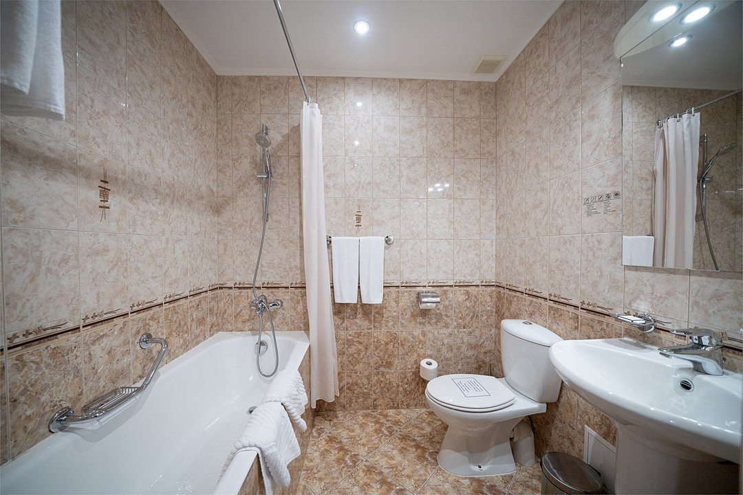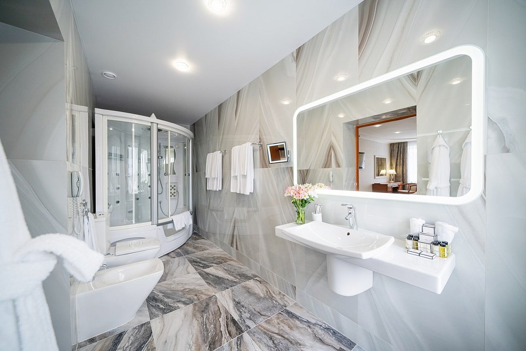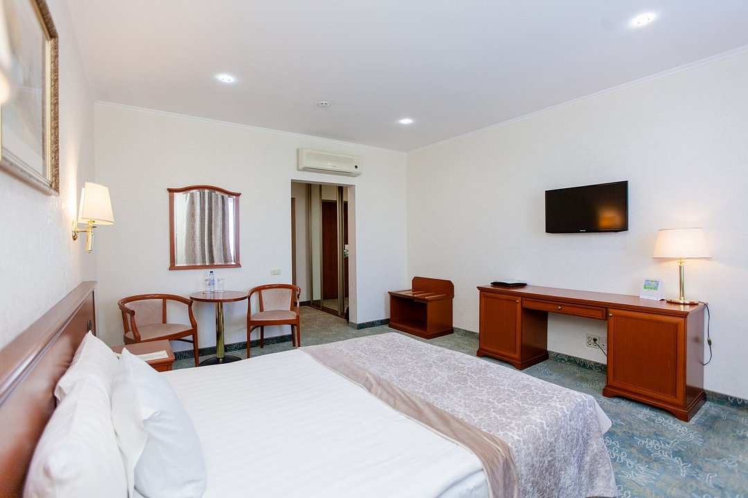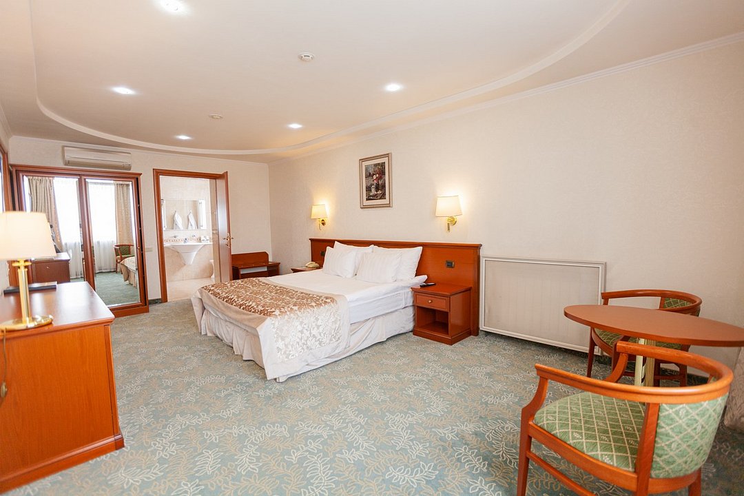 Комфортабельный номер большей площади с кроватью Queen size. 3 номера с мягким уголком (диван, кресла, журнальный столик), 2 номера без мягкого уголка. Площадь номера 40 м²Услуги и удобства