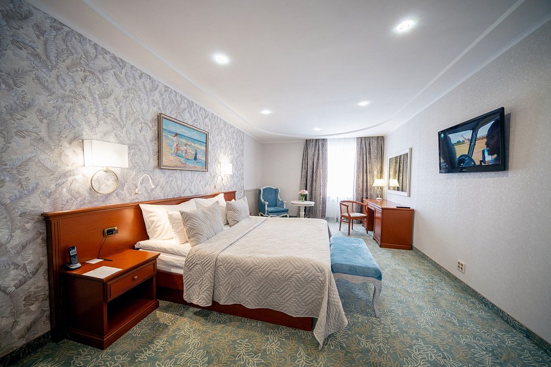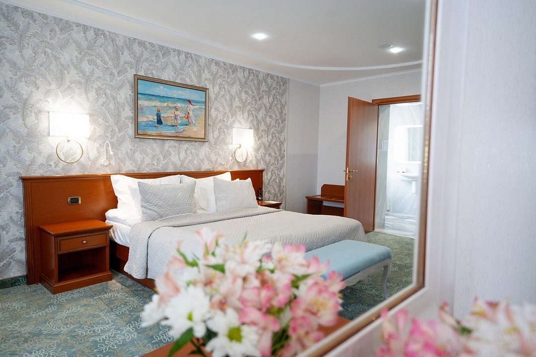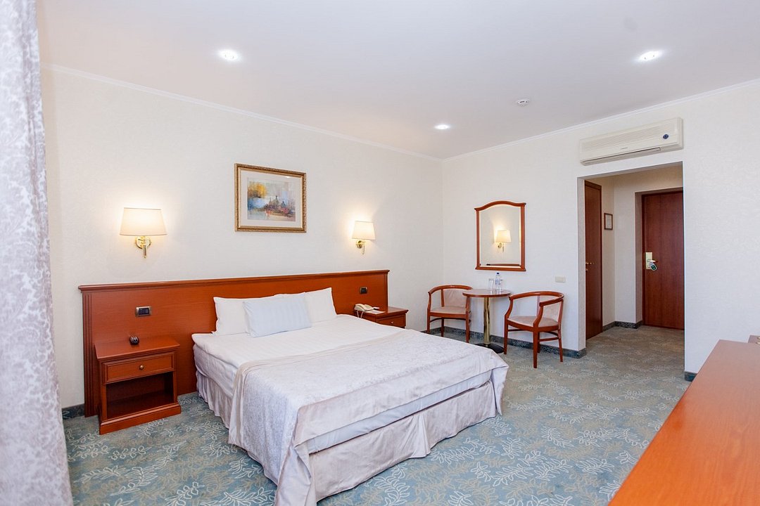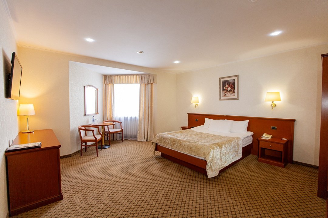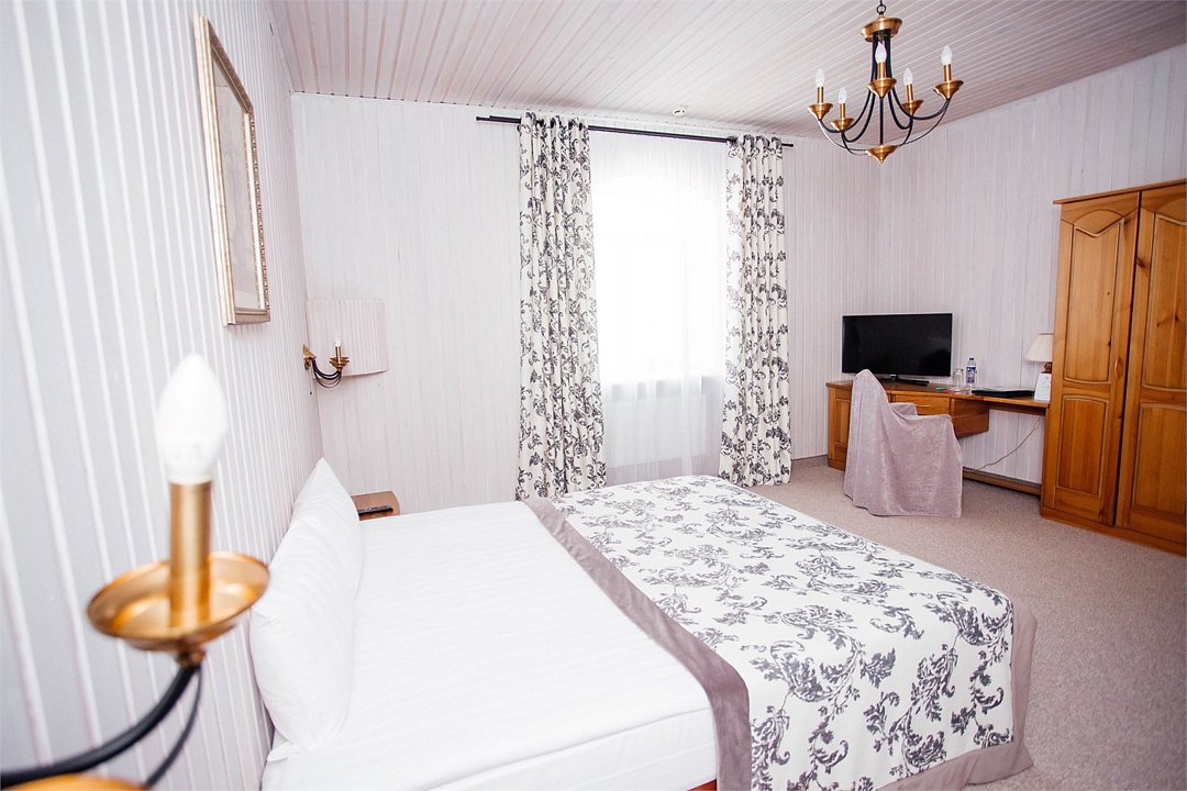 Реновированный комфортабельный номер большей площади с кроватью Queen size. 2 номера с мягким уголком (диван, кресла, журнальный столик), 1 номер без мягкого уголка. Площадь номеров 40 м² и 52 м². Номера расположены на втором и третьем этажах отеля.Услуги и удобства