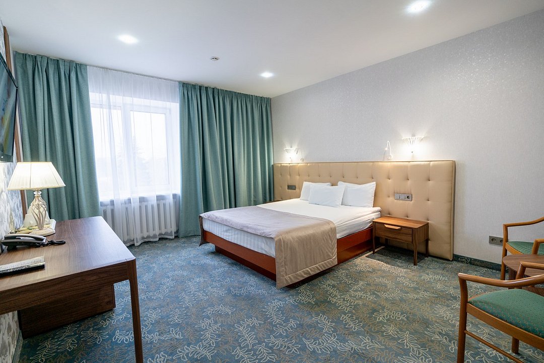 Парк-отель занимает живописное место площадью порядка 5 га прямо на берегу озера и окружен живописным березовым лесом. Природа, тишина, чистый воздух и высокий сервис делают его привлекательным для отдыха. Корпус отеля представлен одним 8-этажным зданием, стилизованным под замок, и 2-этажным коттеджем. Интерьер помещений выполнен в стиле неоклассики – изящной и роскошной одновременно. В номерах все необходимое: система кондиционирования, мини-бар, телефон, сейф, спутниковое ТВ, туалетные принадлежности, халаты, тапочки, фен, удобная современная мебель и сантехника.