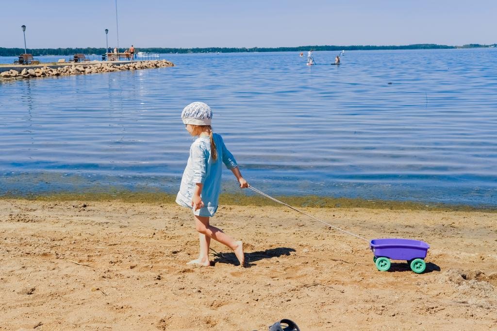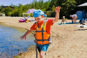 200 метровая песчаная береговая зона с равномерным заходом в воду.