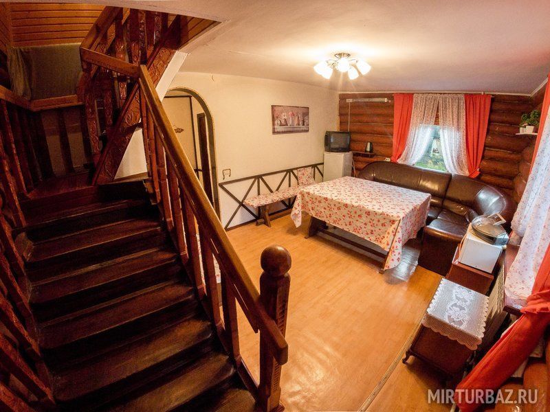 Для размещения гостей предлагаются деревянные избы в русском стиле. Домики рассчитаны на 6 человек. Все домики оборудованы горячим и холодным водоснабжением, отоплением, гостиной, уютными спальными комнатами, сауной, санузлом, душем. Оснащение: холодильник, телевизор, 2-спальные и 1-спальные кровати, мягкая мебель, обеденный стол. Рядом с каждым домиком веранда, двор с мангальной зоной.
