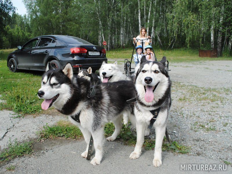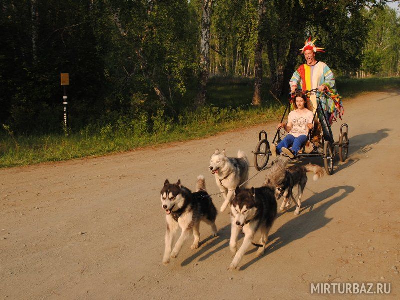 Летом катание на собачьих упряжках ещё более интересное: тележка стремительно несётся по лесной тропинке под пение птиц! Поездка наполнена солнцем, летним тёплым ветерком и ароматом цветущих растений. А собачки хаски несут позитив такой мощности, что положительный заряд, улыбка и хорошее настроение остаётся на долгие дни.