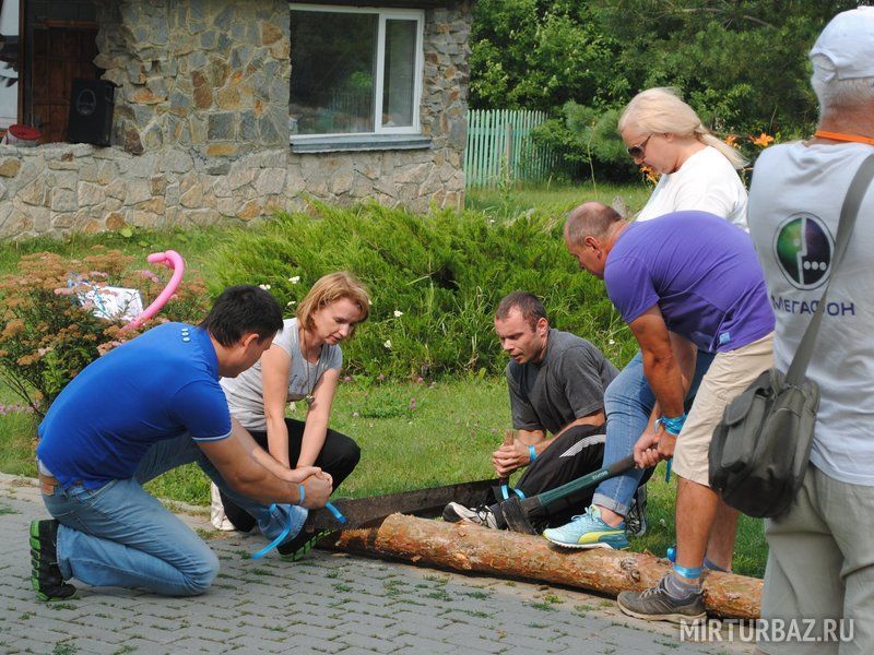Настоящее походное испытание по распилу — расколу берёзовых чурок (распилить пилой бревно на 4 части, каждую из частей расколоть топором на 4 части и сложить, развести костерчик, пожарить хлеб на костре и всей командой подкрепиться, оценивается лучшее время). Удивительно весёлое соревнование на время, командную работу и сплочение коллектива!